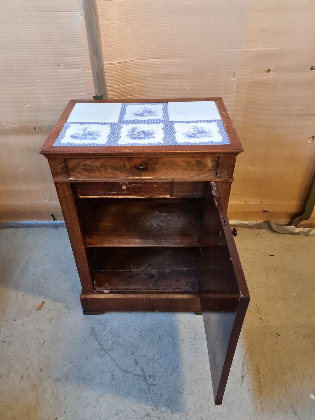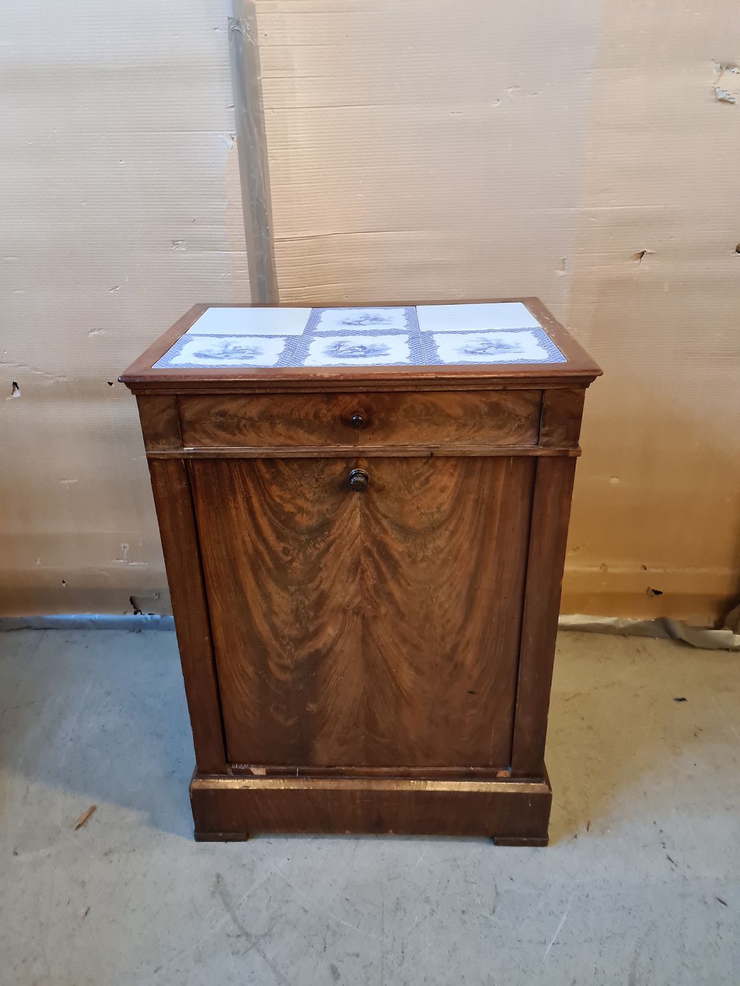 Servante i fineret mahogni med kakler, fra 1910erne.