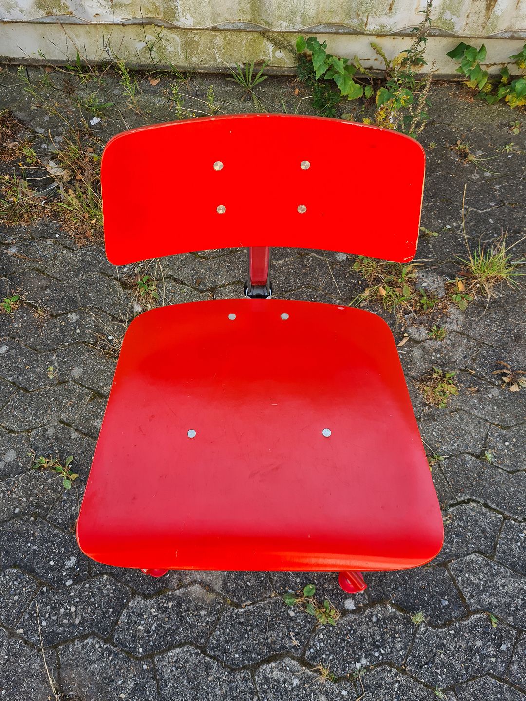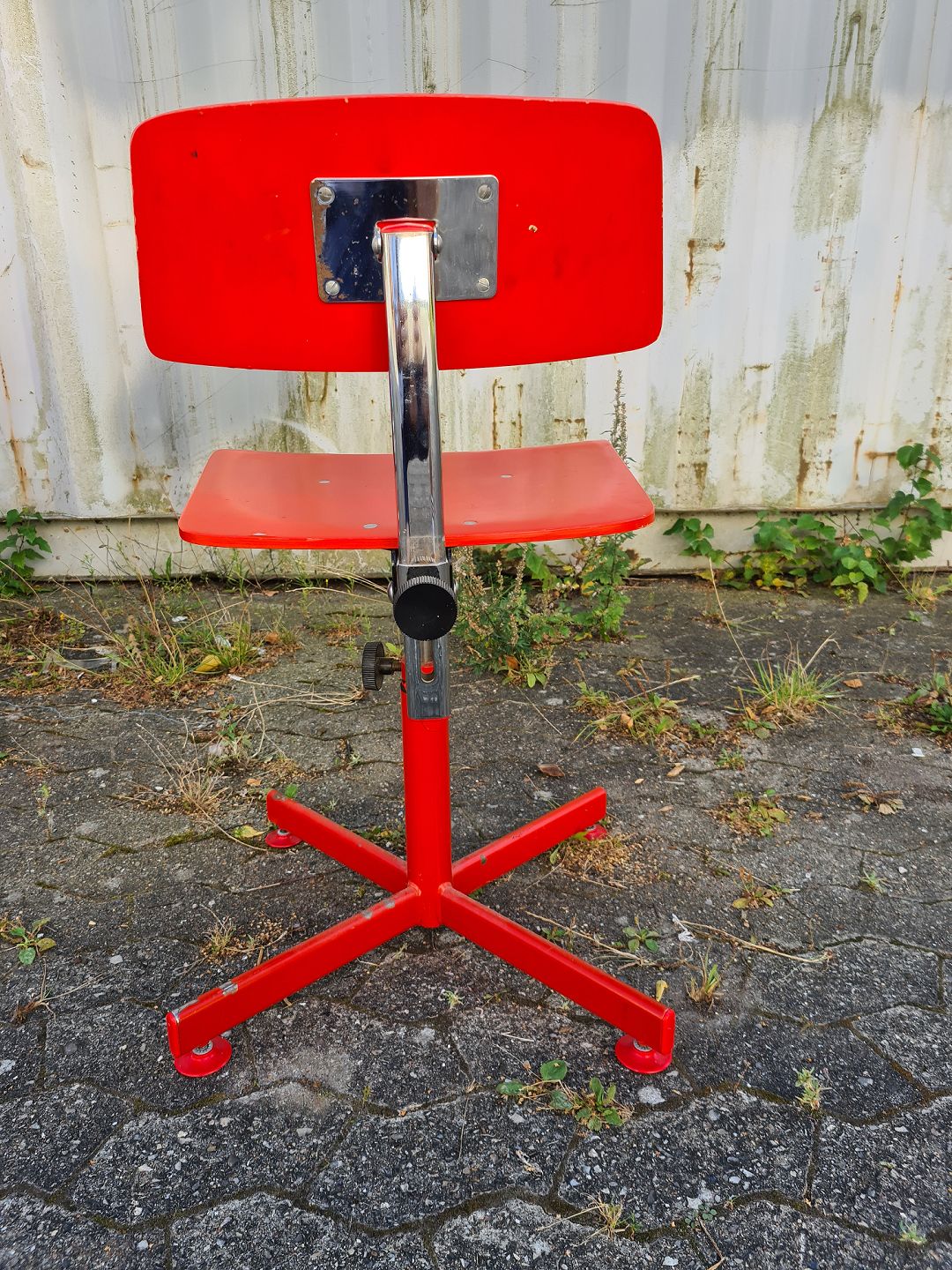 Stol i malet metal og træ, fra 1990erne.