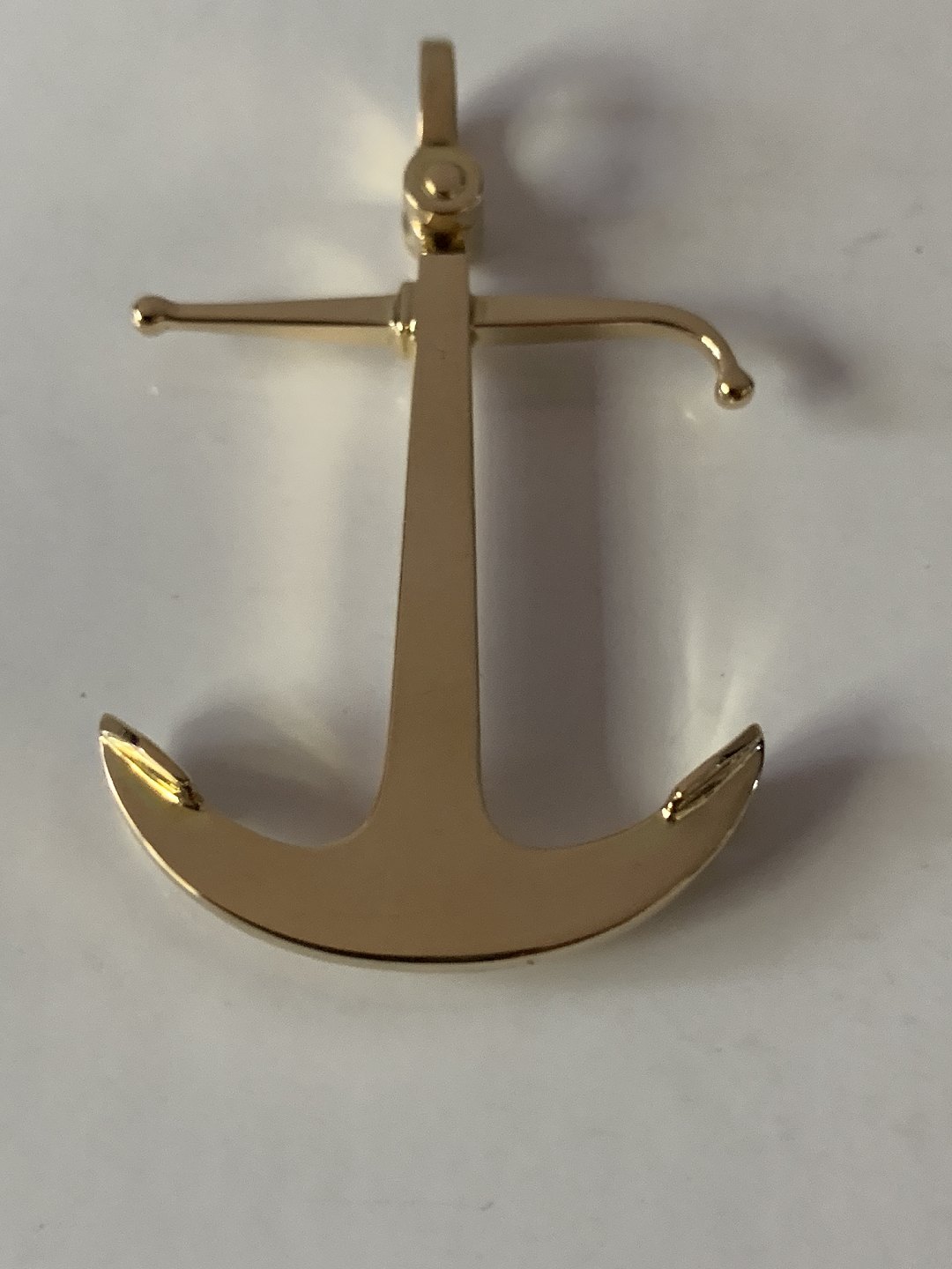 Flot og massivt guldvedhæng i 14 karat guld, udformet som anker. Vedhænget er stort, og vil være ideelt med en større guldkæde. Vedhænget udstråler styrke og liv, og henleder tanken til havet.