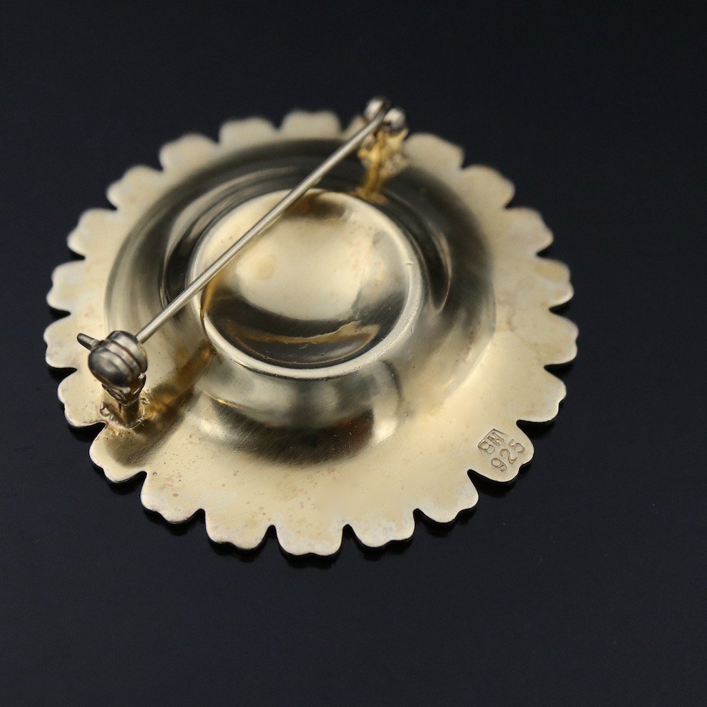 Bernhard Hertz Marguerit / Daisy broche i forgyldt sterlingsølv med hvid emalje - 43mm.