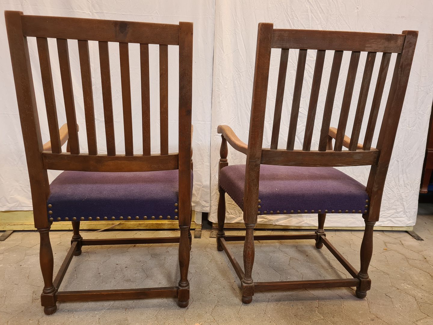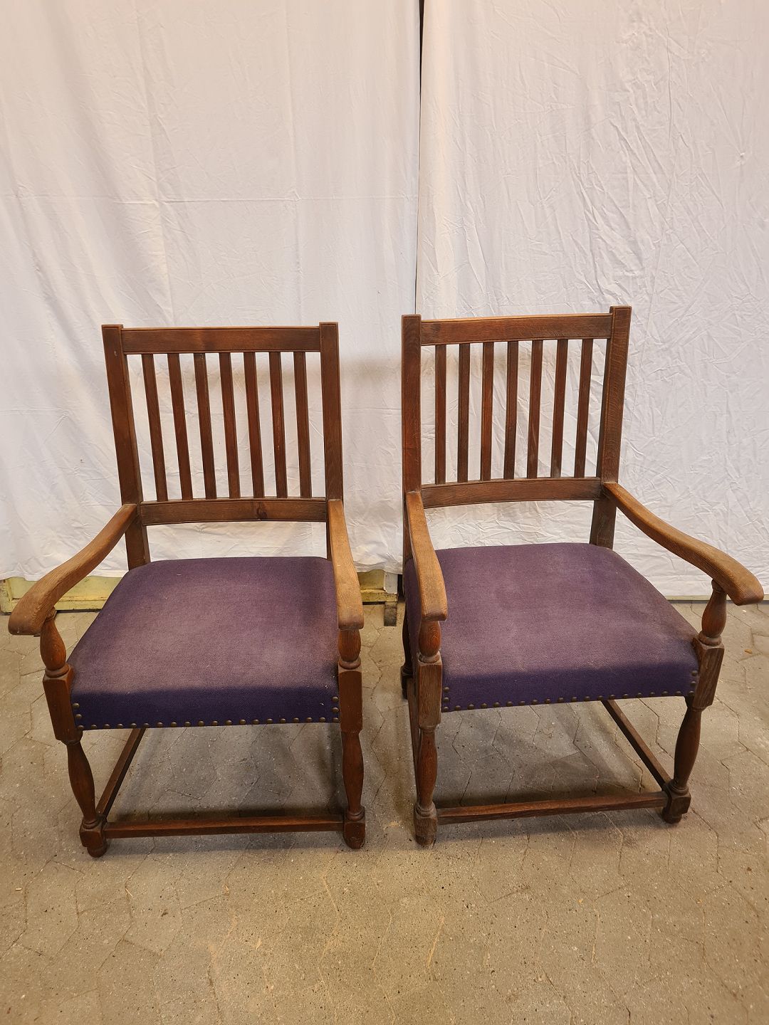 2 Armstole i massivt egetræ, fra 1940erne.