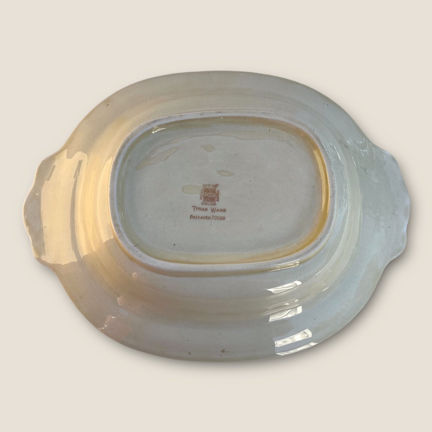 Adams Titian Ware, Della Robbia creme, Fad med hanke, 28cm bred, 21,5cm dyb, 6cm høj *Pæn stand*