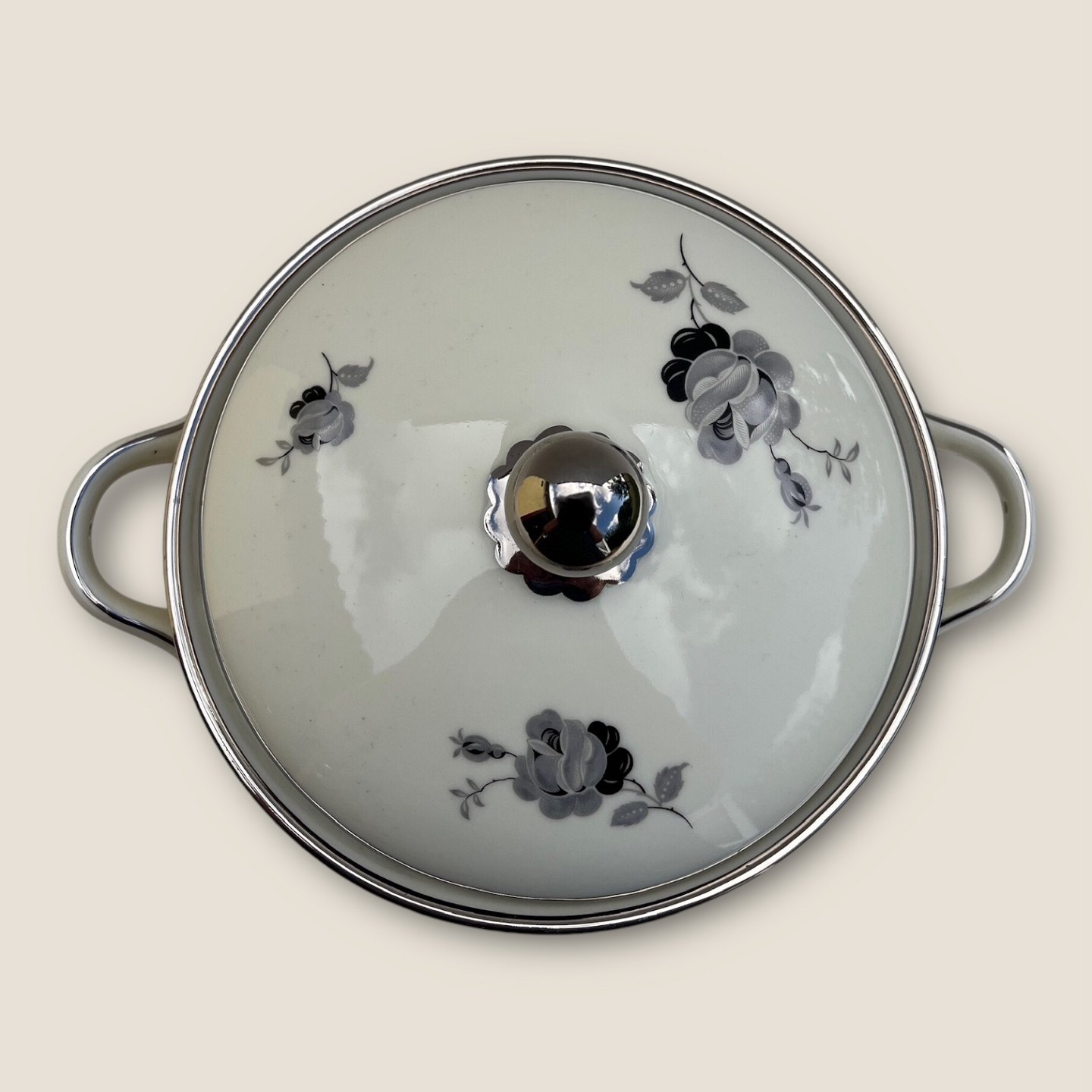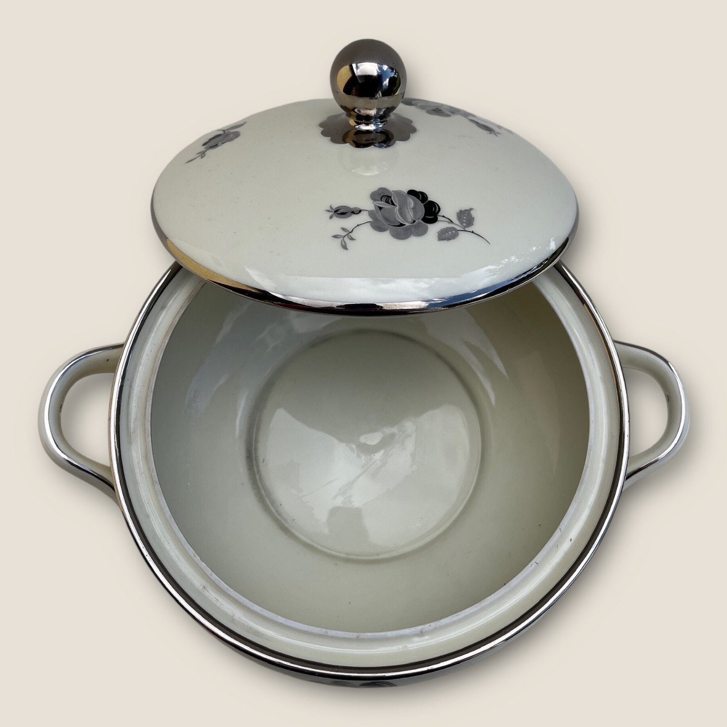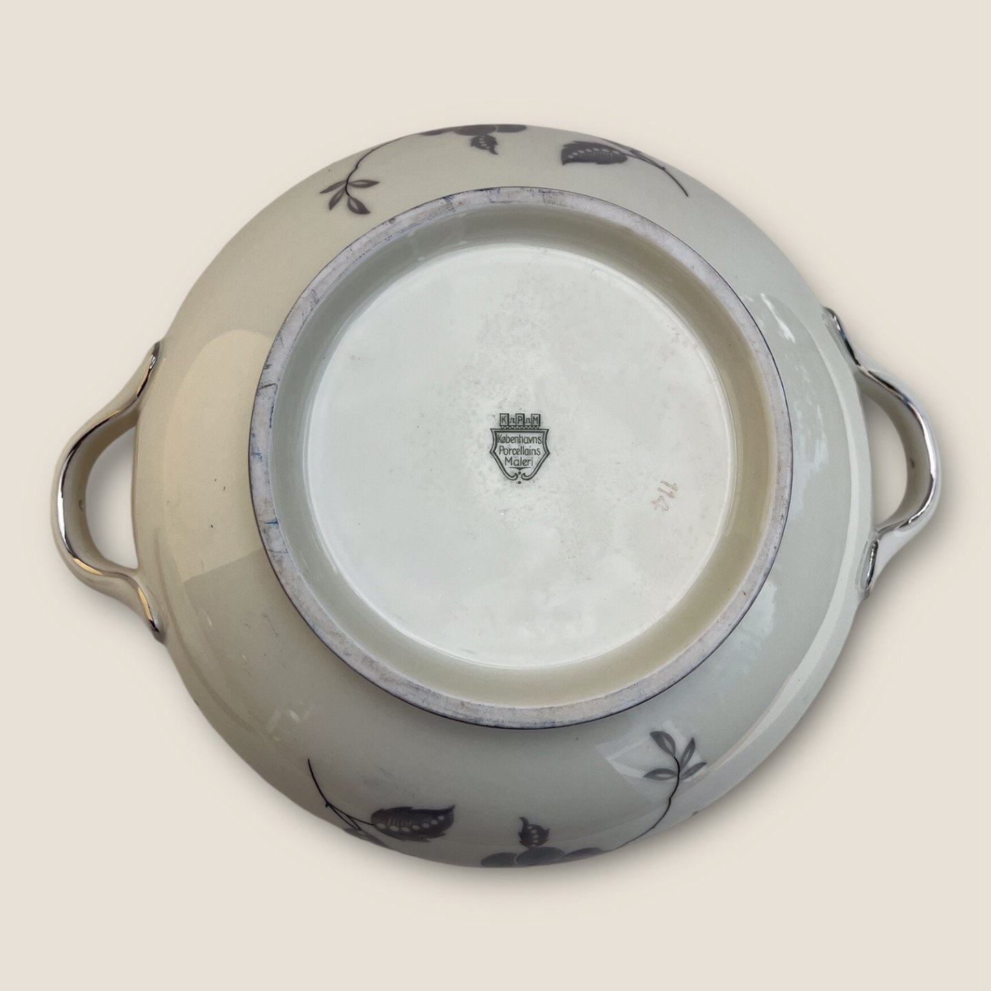 Sort rose, Med platinkant, KPM, Lyngby, Lågskål, 29cm i diameter, 16cm høj *Pæn stand*