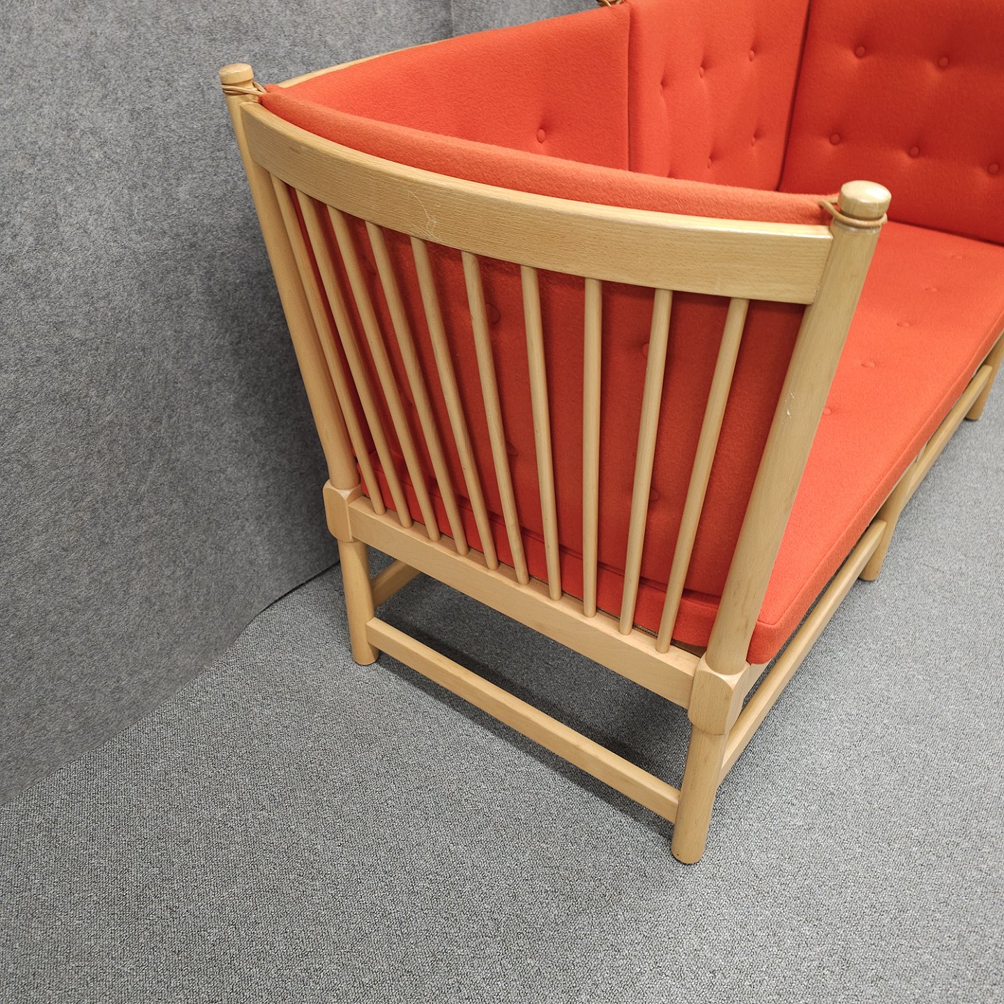 2 personers Tremmesofa af bøg og med hynder i en rød/orange farve. Nr. 08-121