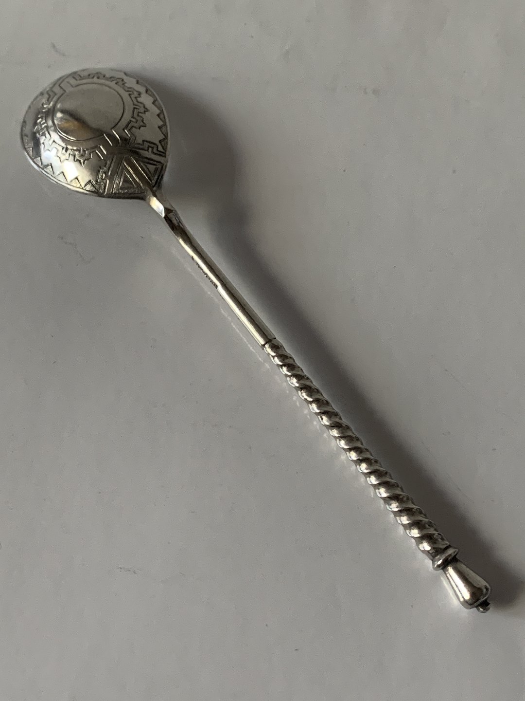 Russisk sølv ske med dekoration. Den fantastiske ske