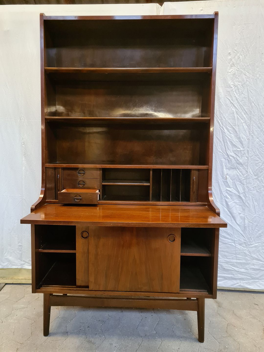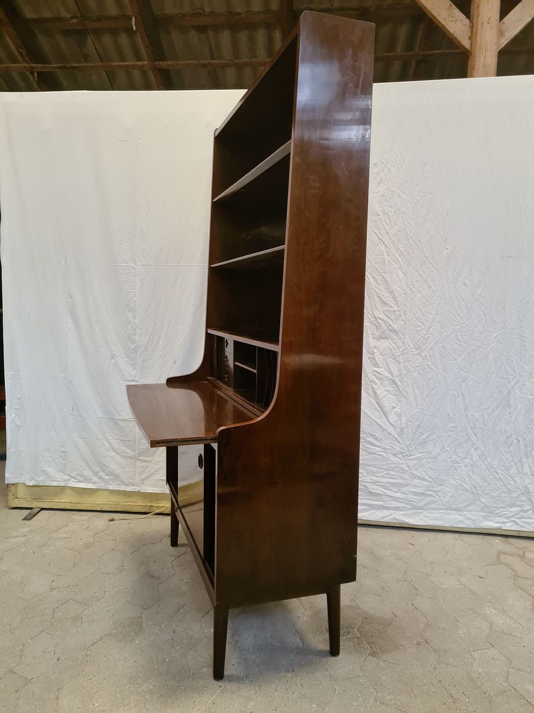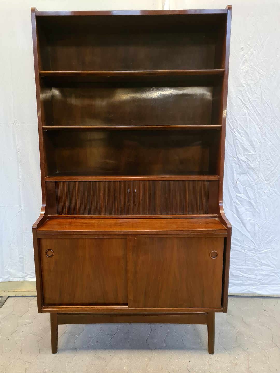 Reol i fineret nødetræ, fra 17.december 1964