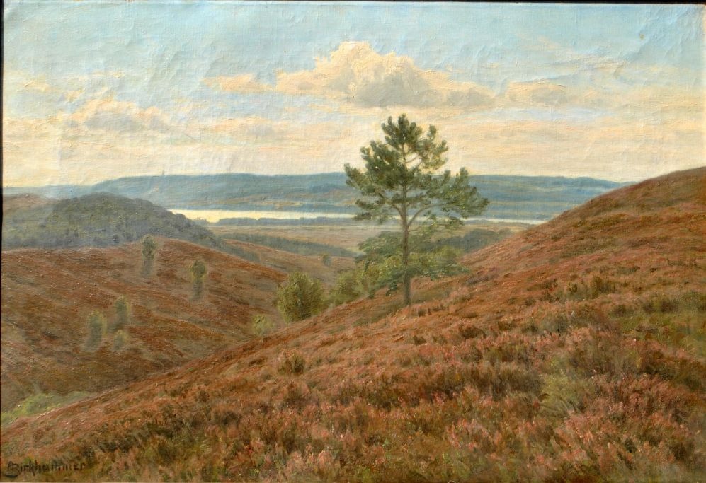 Birkhammer, Axel Johannes Emil (1874 - 1936) Danmark: Hedebakker ved Svejbæk. I baggrunden Himmelbjerget
