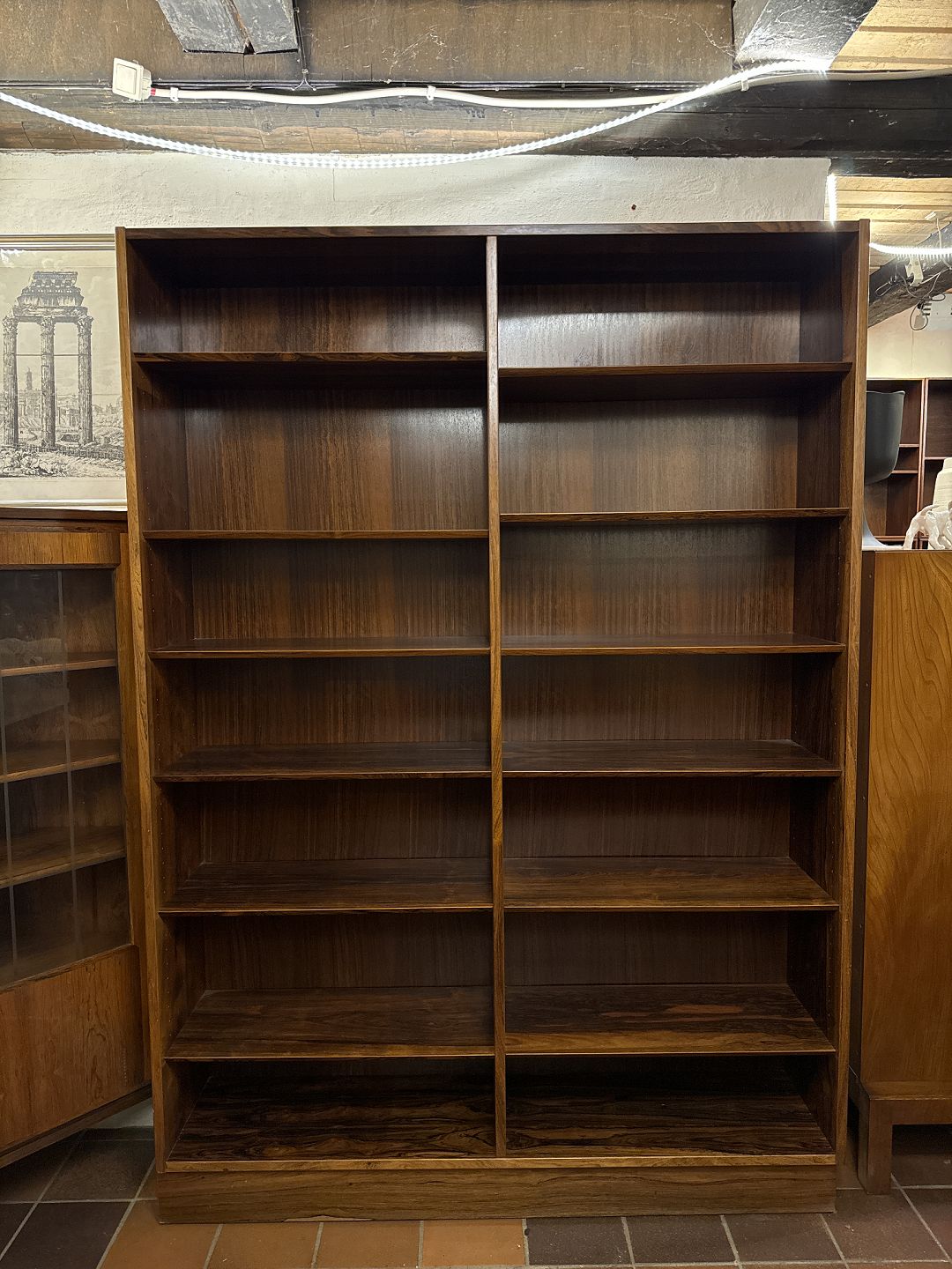 Poul Hundevad reol på sokkel med justerbar hylder.