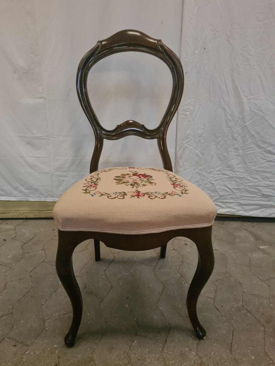 Salonstol i mahogni og bøgetræ med broderet sæde, fra 1910erne.