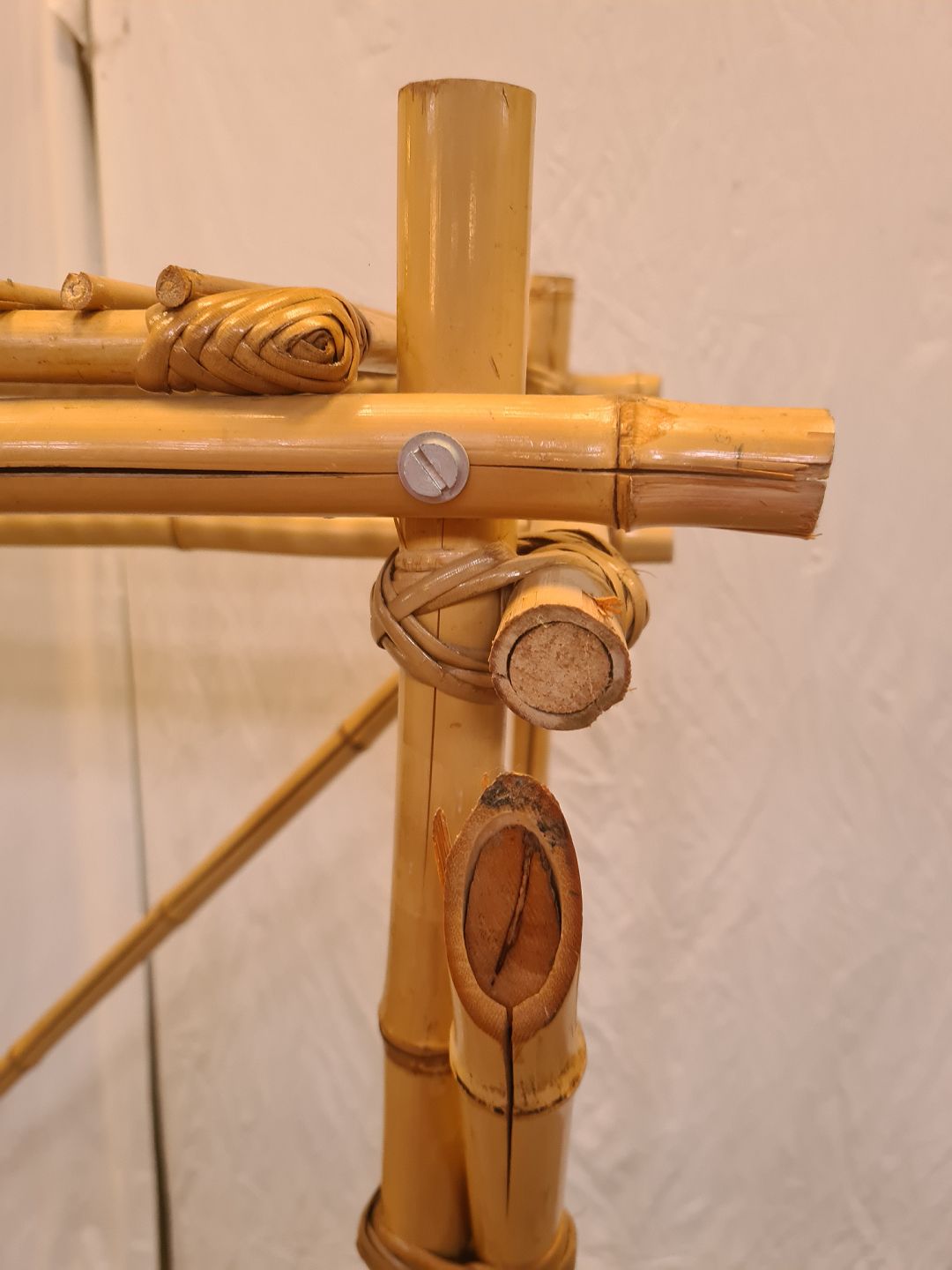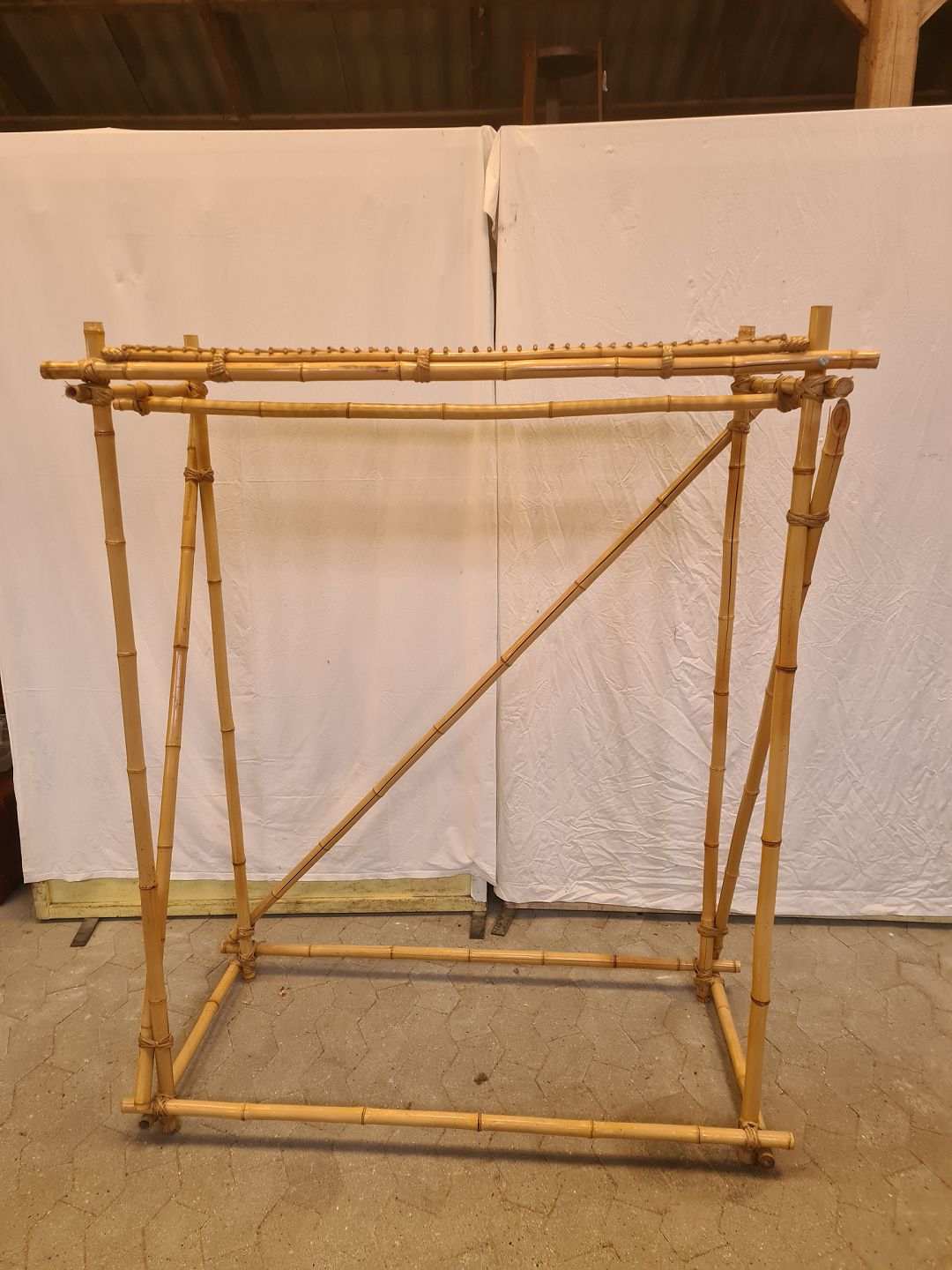 Tøjstativ i bambus til tøjbøjler og med hattehylde, fra 1990erne.