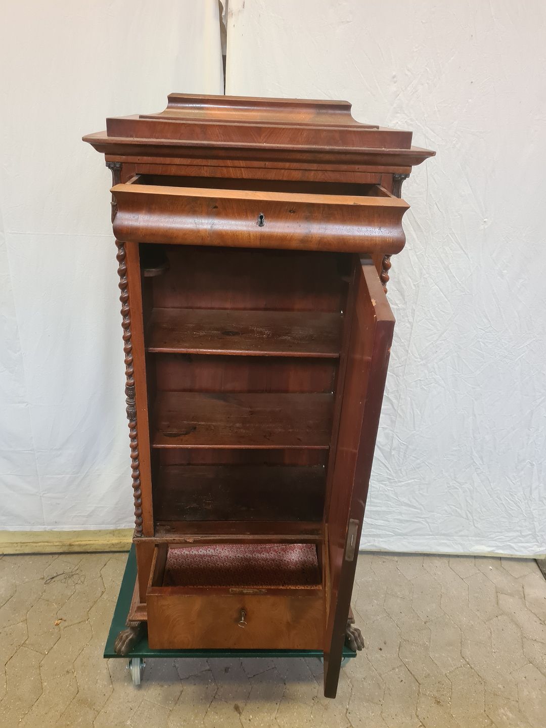 Skab i fineret mahogni, fra 1890erne.