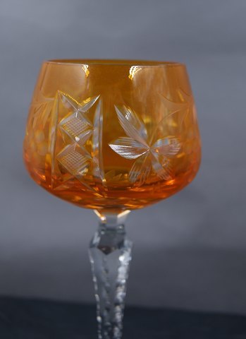 Rømerglas med orange kumme. På sleben stilk og med slibninger på kant af fod. I rigtig pæn stand.