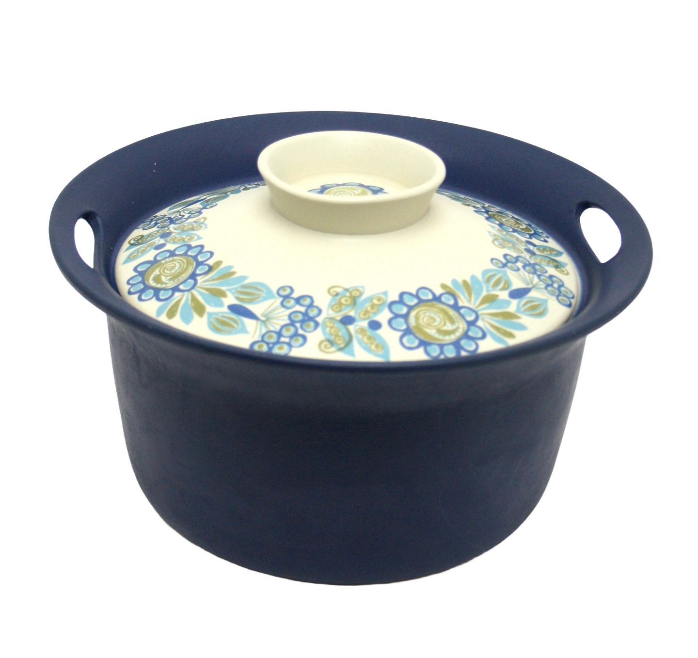 Text zugänglich auf Dänische: Figgjo Flameware, Norway, Tor Viking, Stor gryde med låg og hanke. For gas and electricity. Højde 12,5 cm. Diameter 24,5 cm. Flot stand indvendig mørk i bund. Pris: 375 kr. stk. Lager: 1
