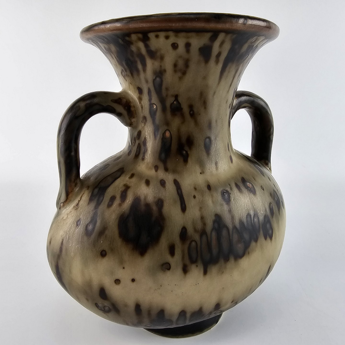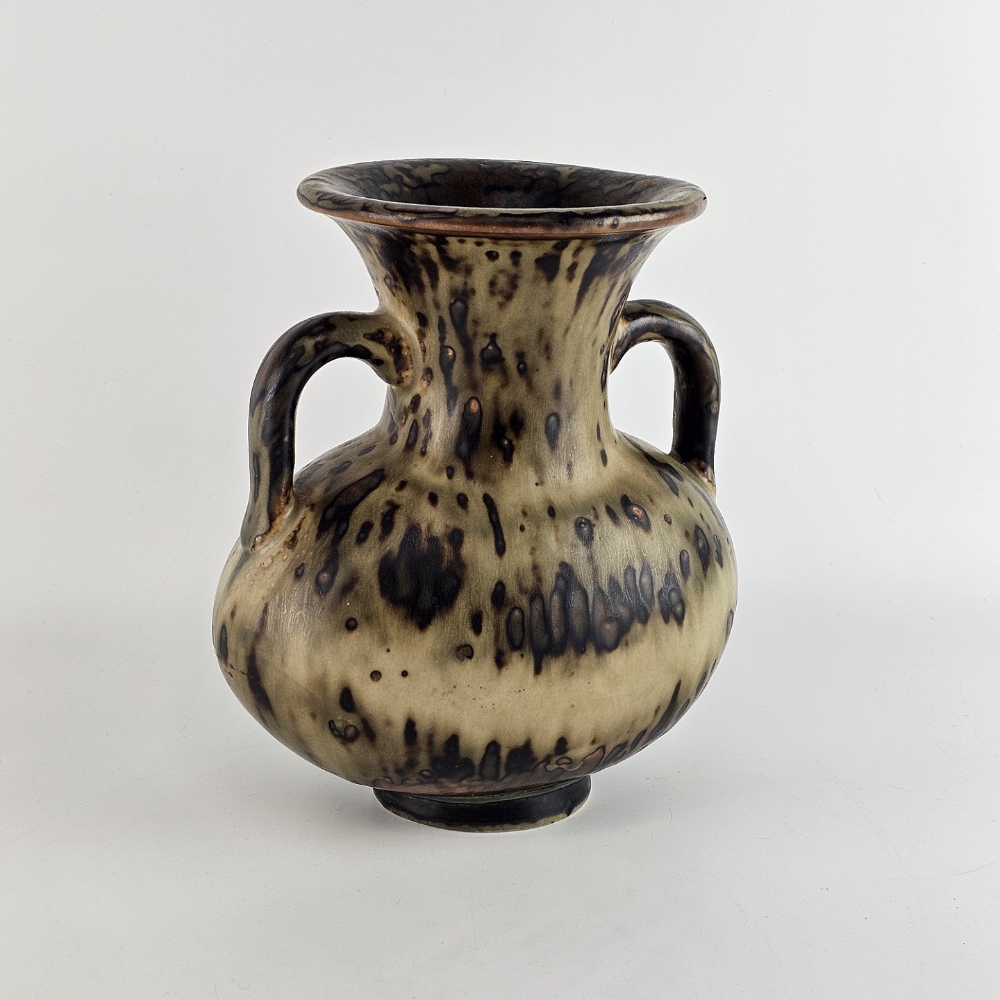 Vase i glaseret stentøj dekoreret med hanke