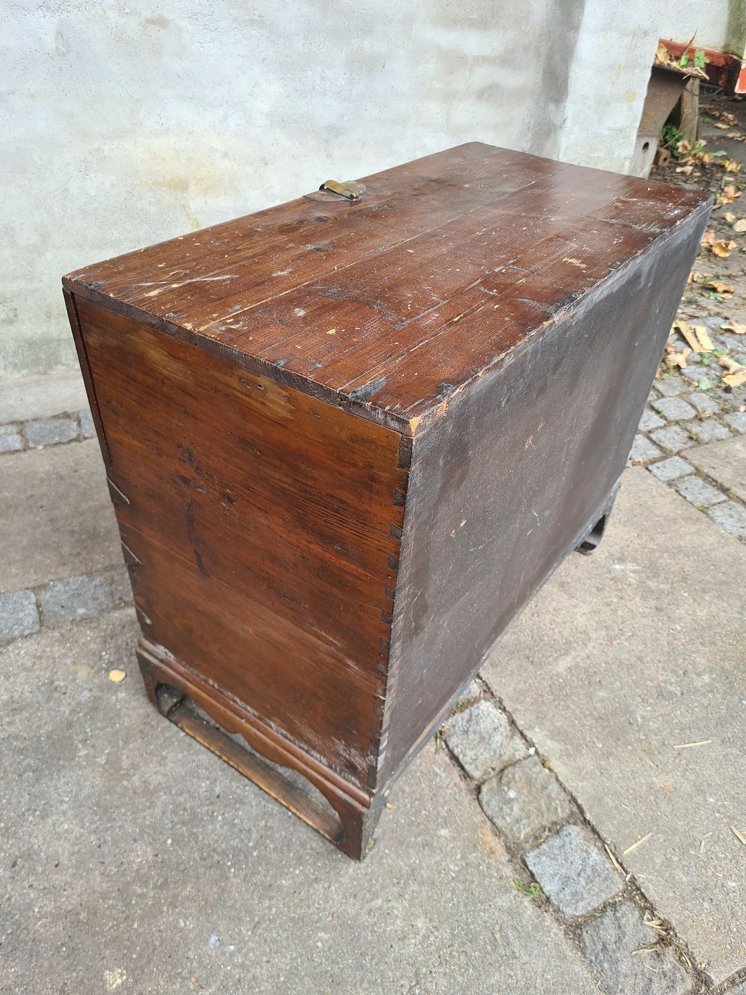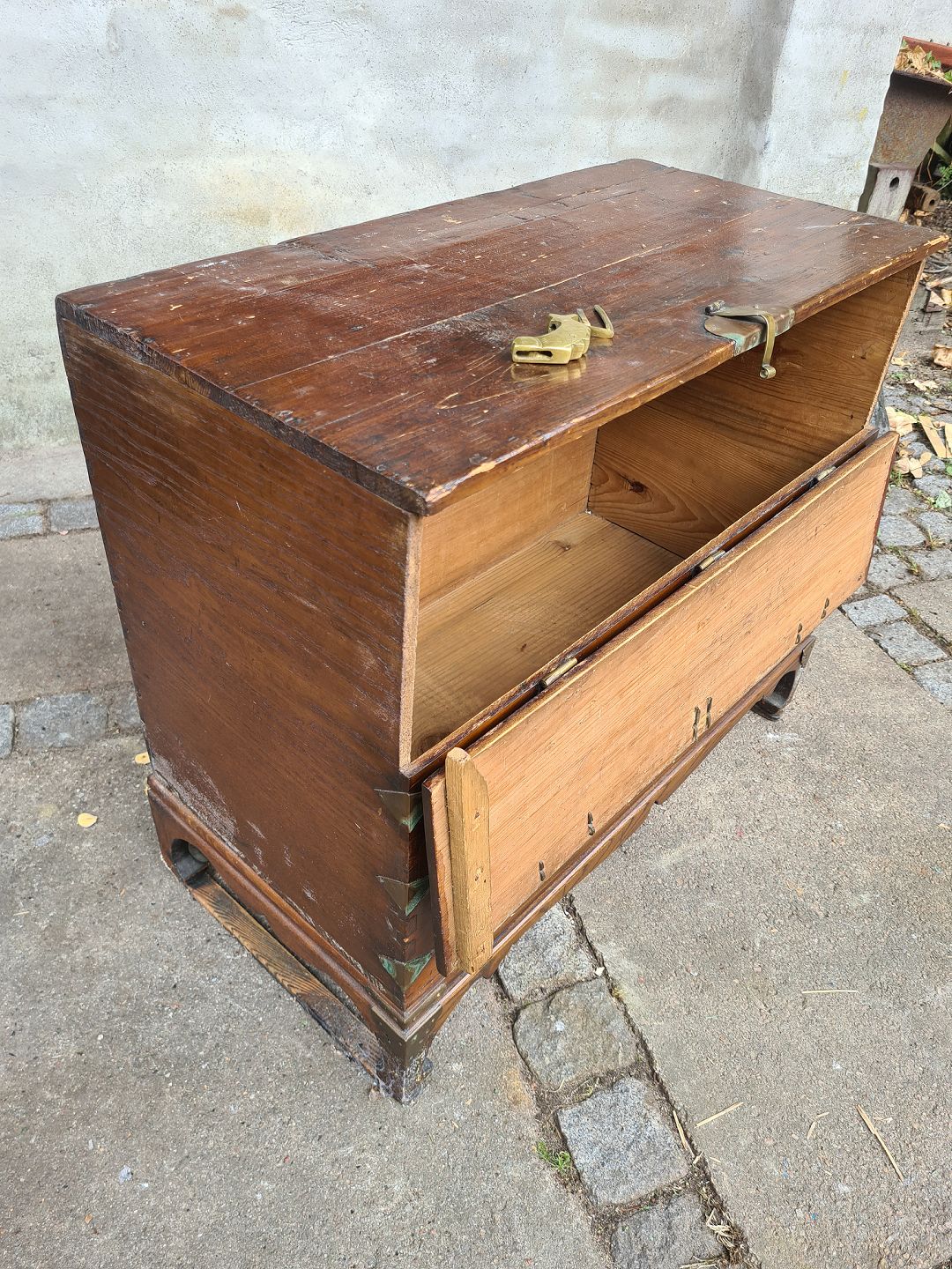Kiste fra 1950´erne i fyr med messingbeslag. Fremstår pæn, velholdt og udmærket funktionsdygtig.