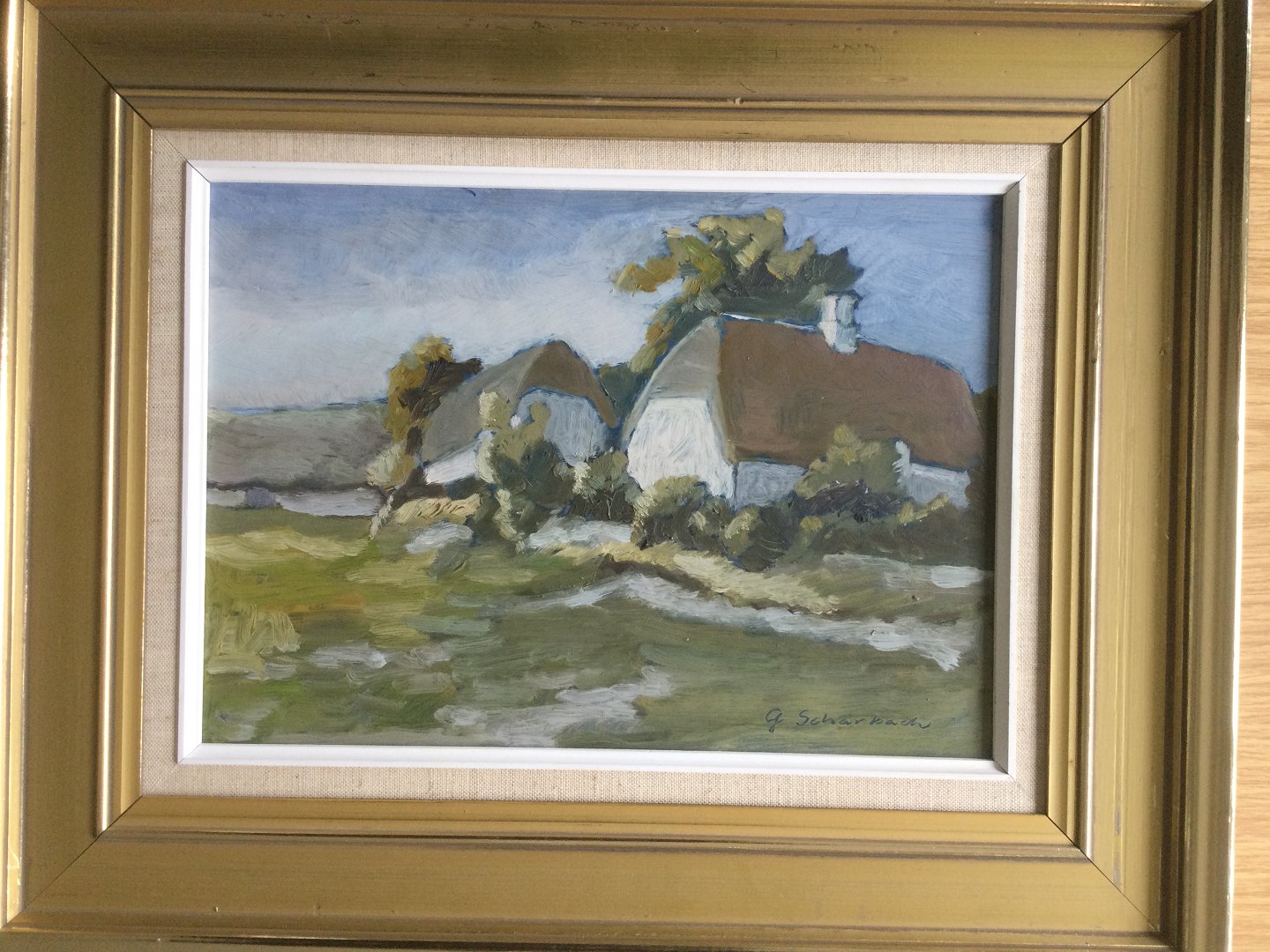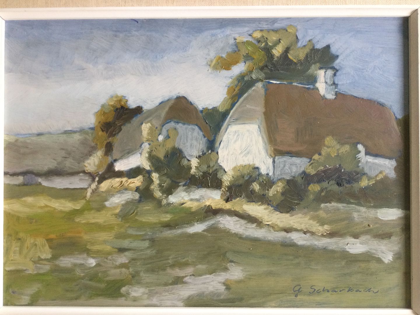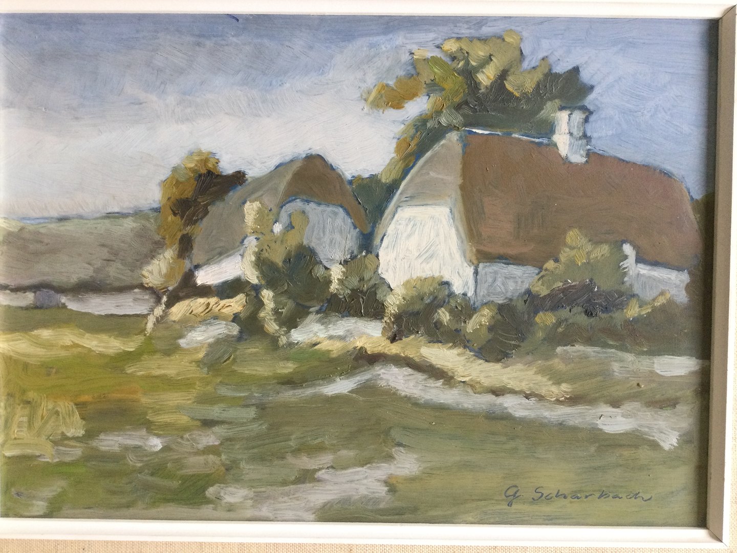 Maleri af Günther Scharbach - Landskab med gård