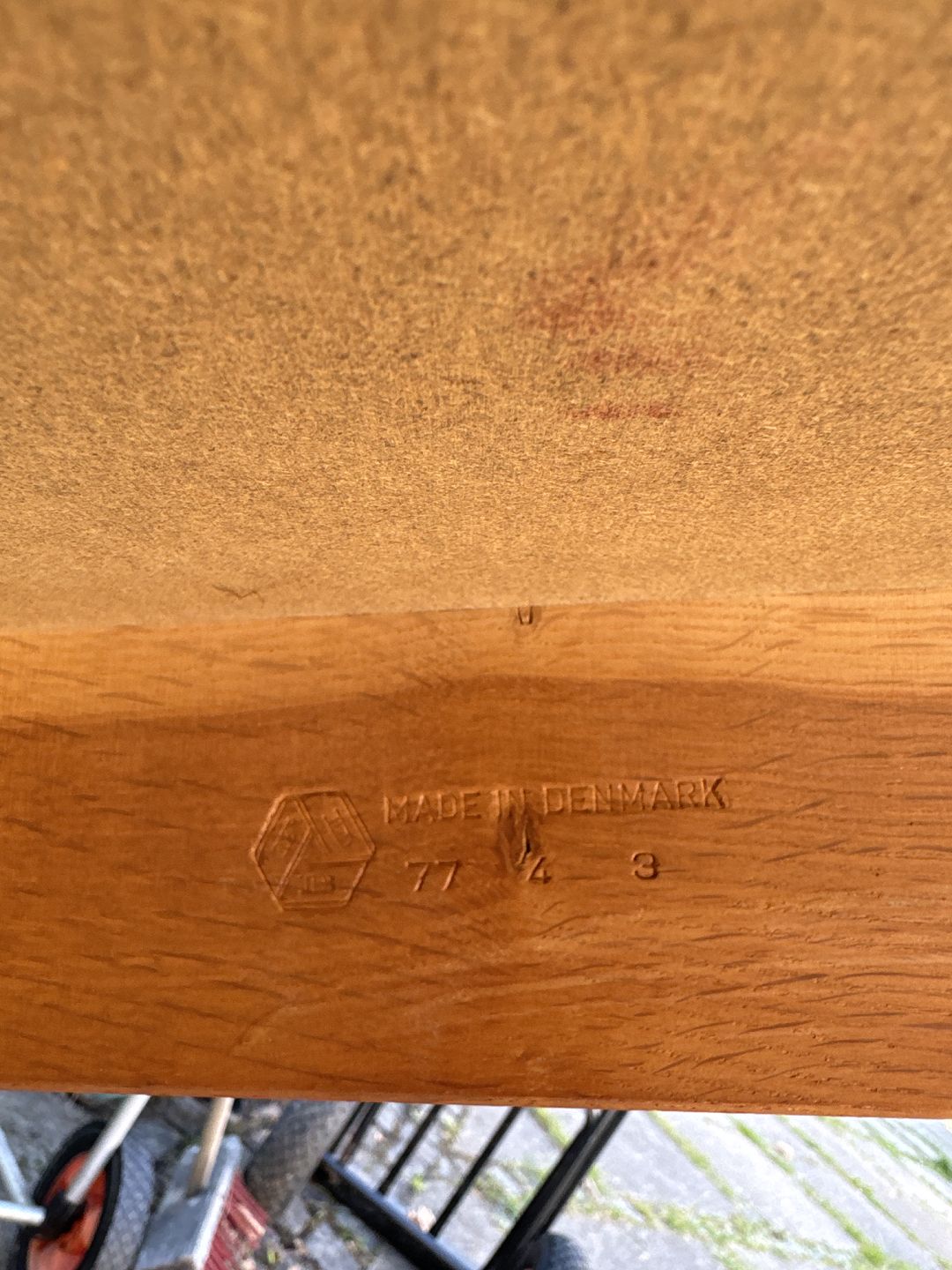 Jørgen Bækmark spisebord udført i eg med indlagt kork i pladen. Produceret af FDB og fremstillet i 1977 (stemplet herfra)