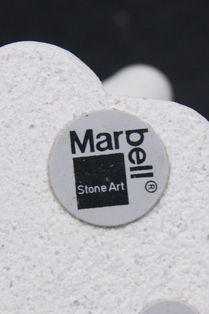Stone Art hvid figur fra Marbell, Belgien. Barn med bamse