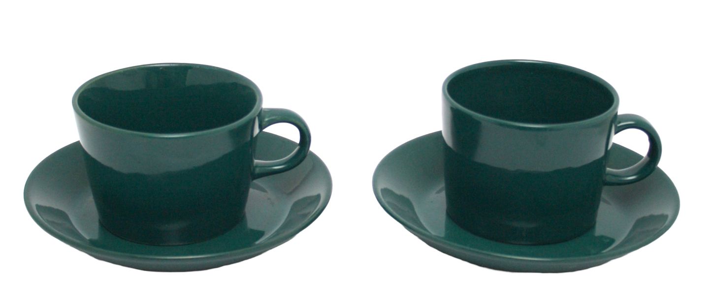 Arabia, Teema grønglaseret porcelæn. Bemærk der er 2 størrelser. Der er ingen stempler i bund.