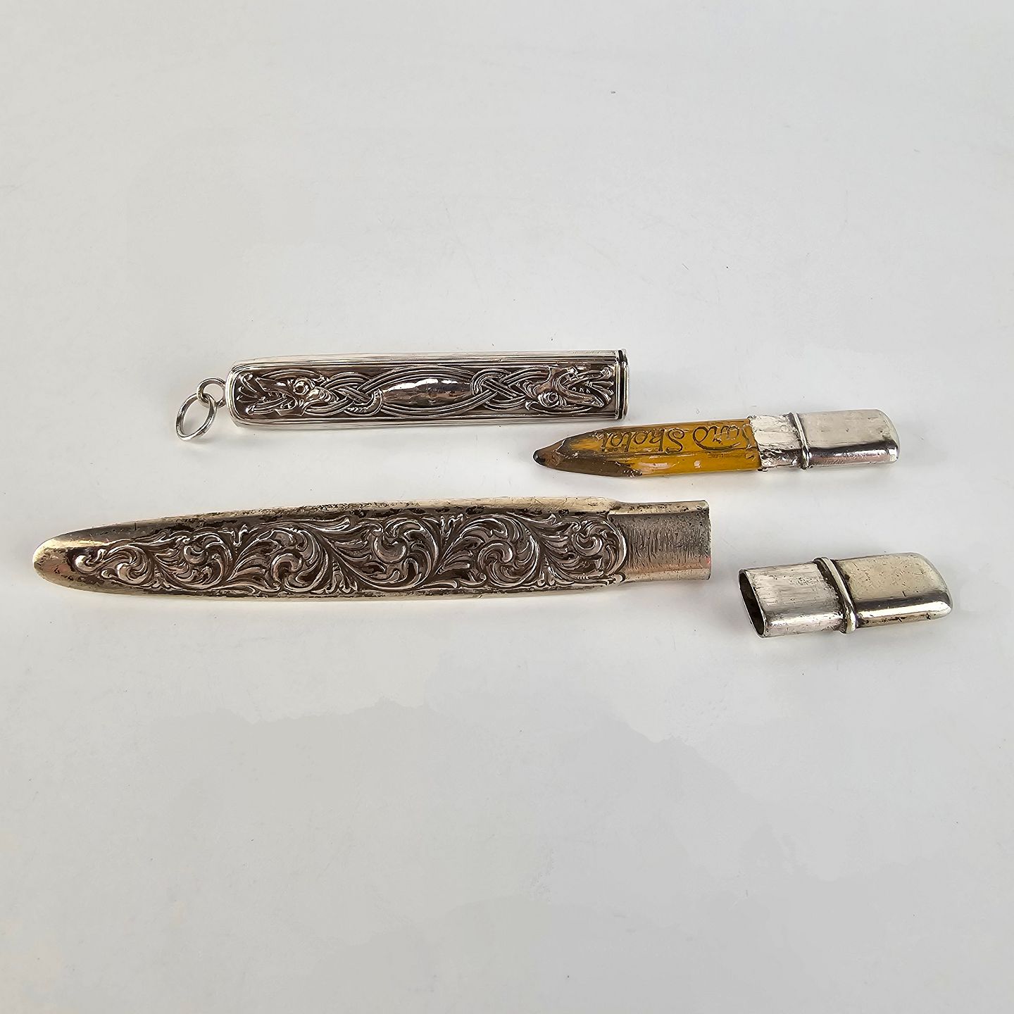 Blyant etuier af 830 sølv. Dekoreret med forskellige motiver