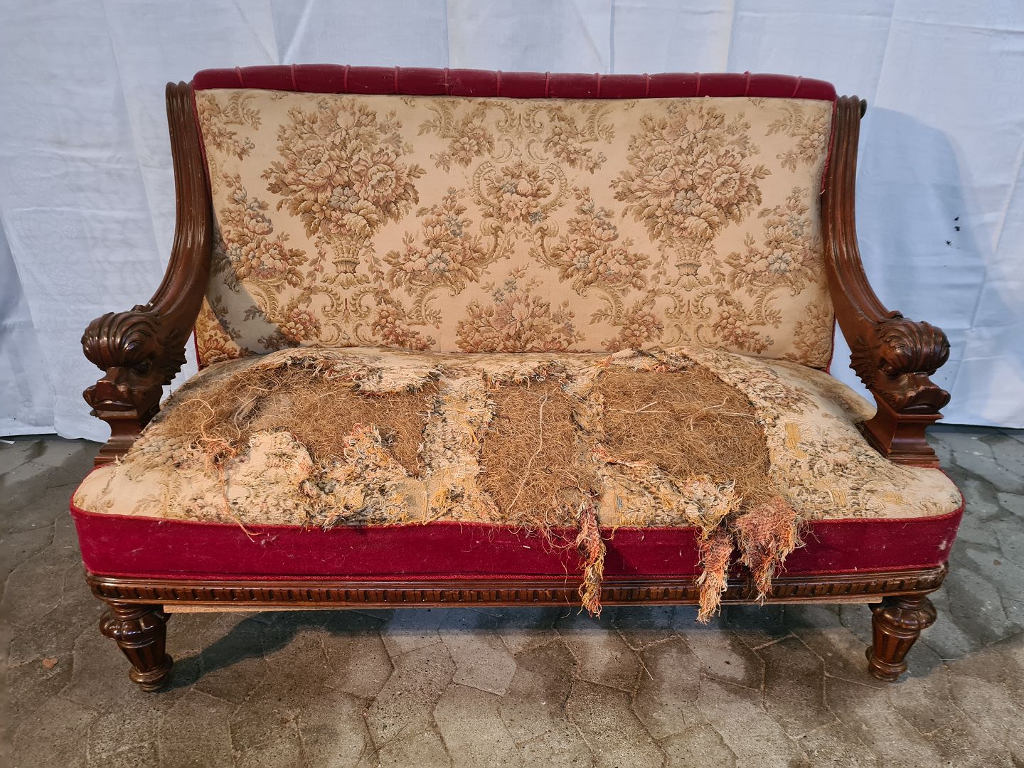 Sofa og 3 lænestole i massivt mahogni, fra 1910erne.