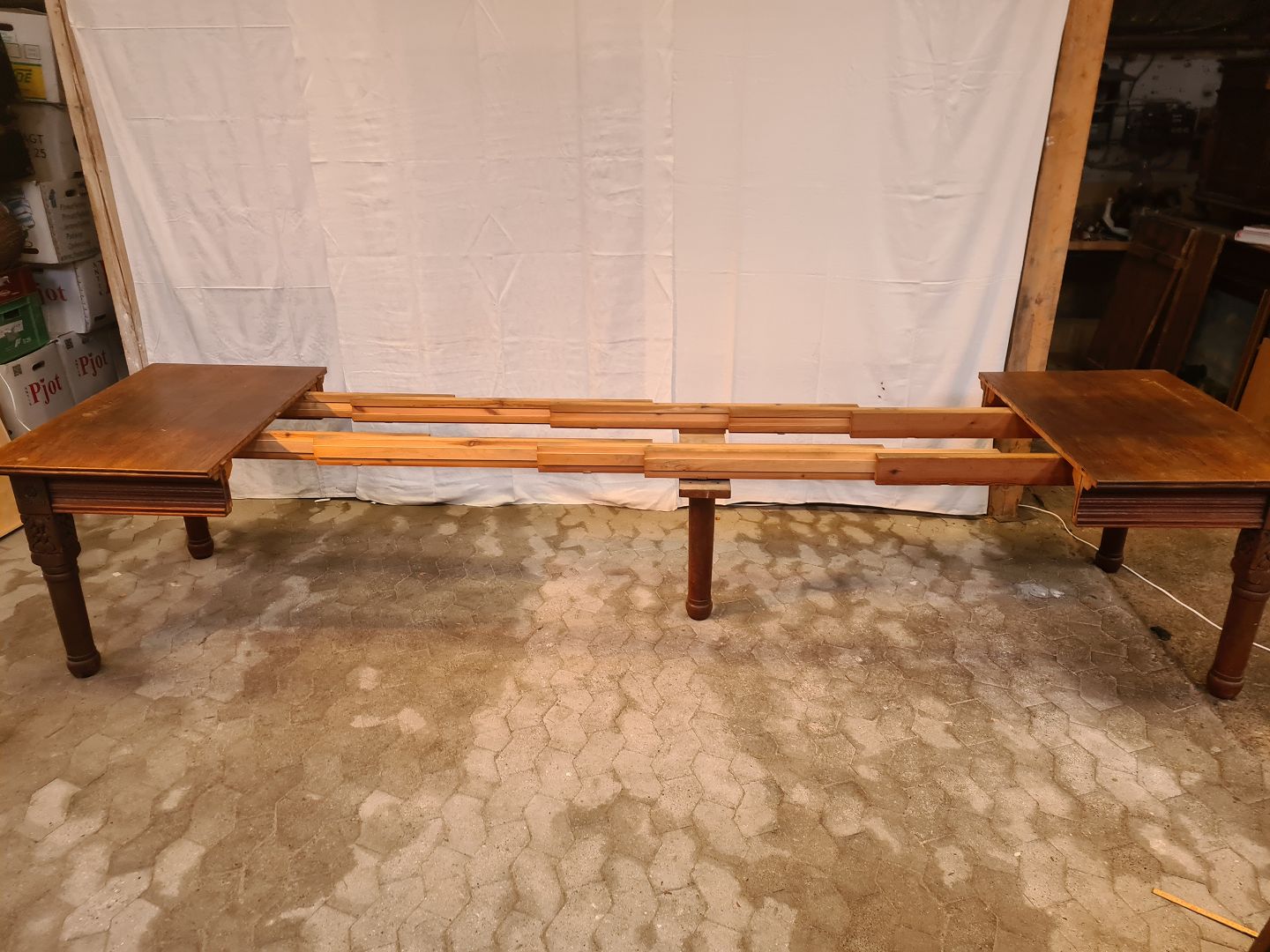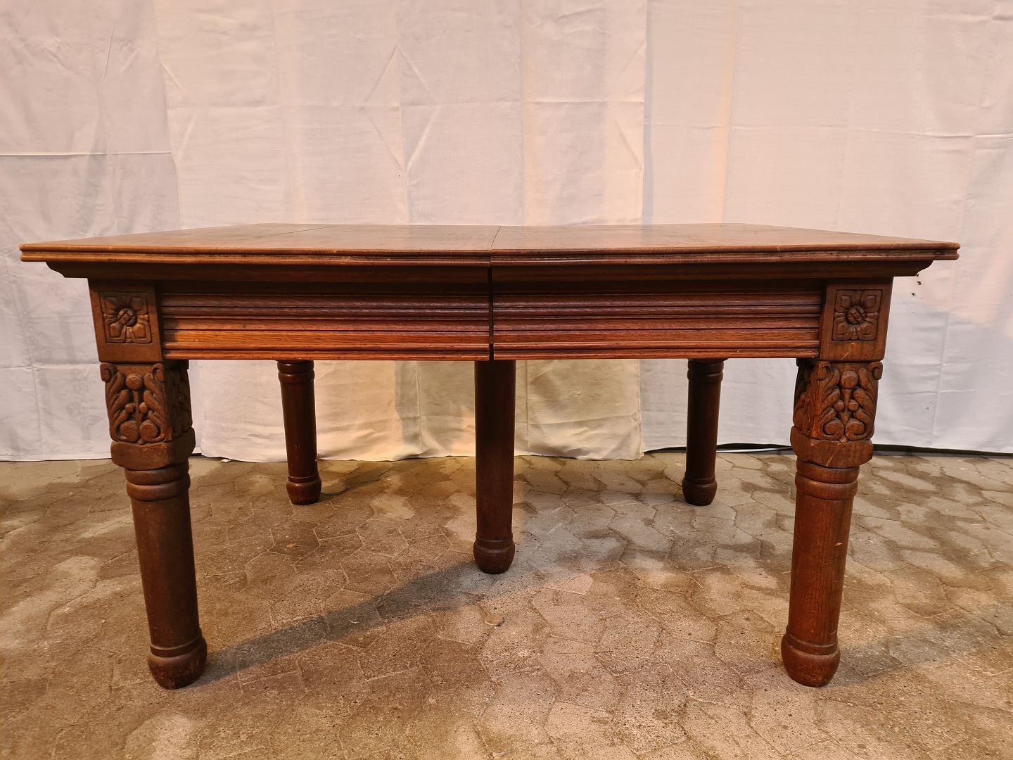 Spisebord i massivt egetræmed 4 tillægsplader, fra 1910erne.