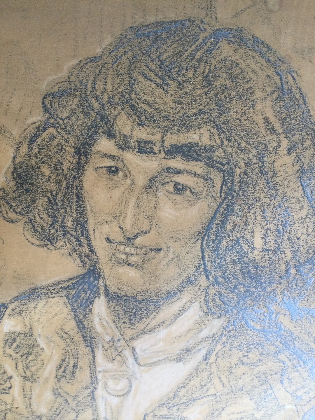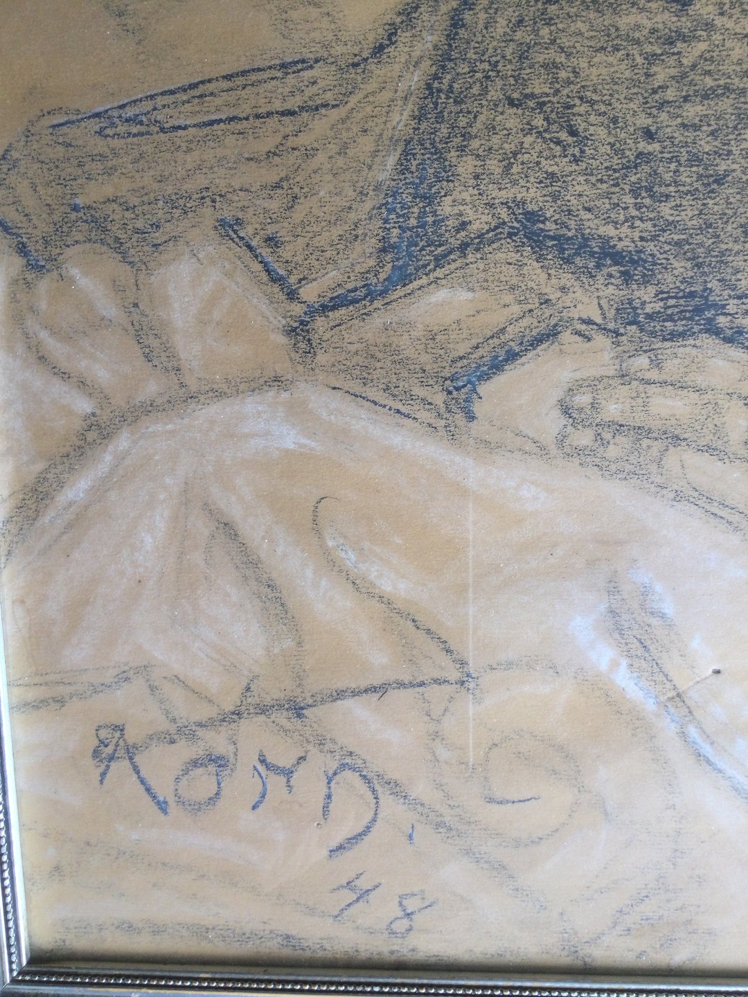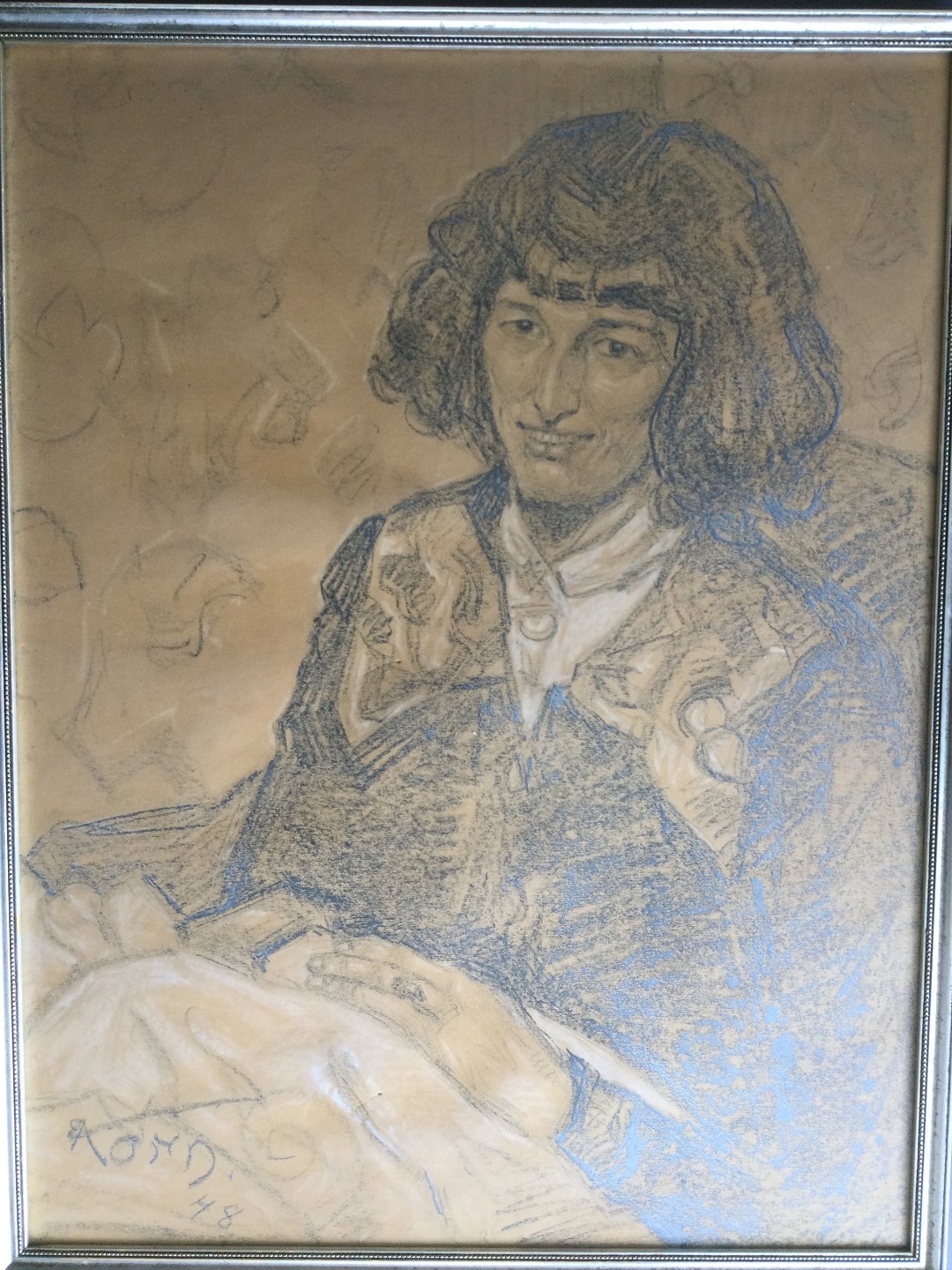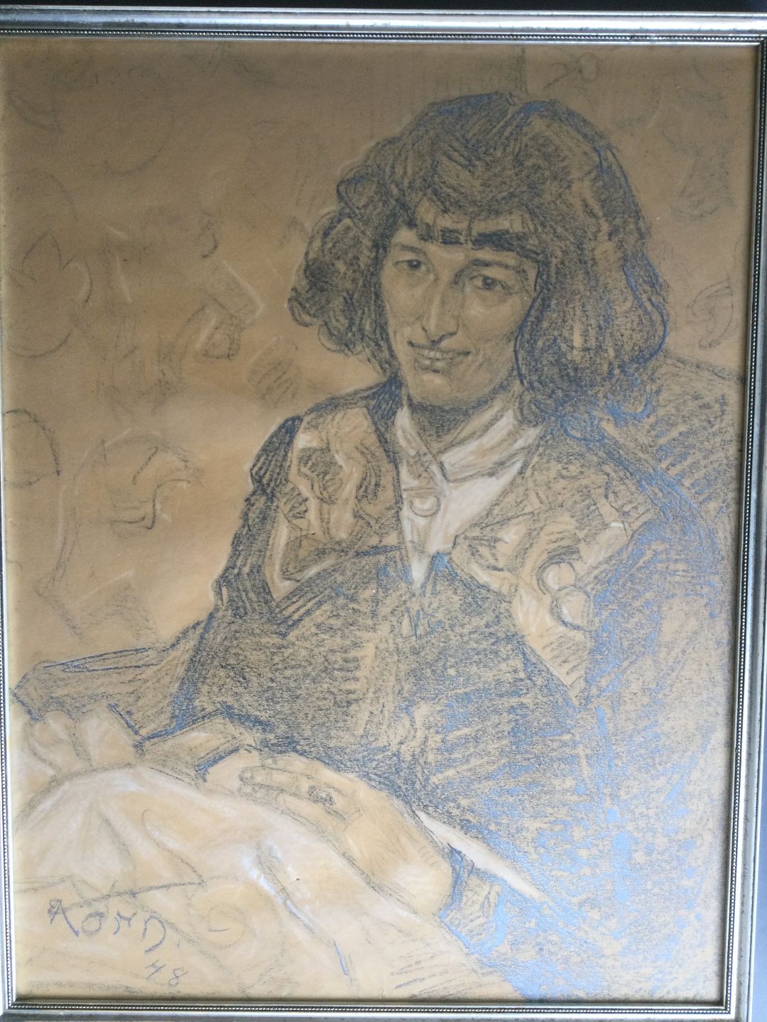 Tegning af H.J. Korn 1948 - Portræt af læsende ung kvinde.