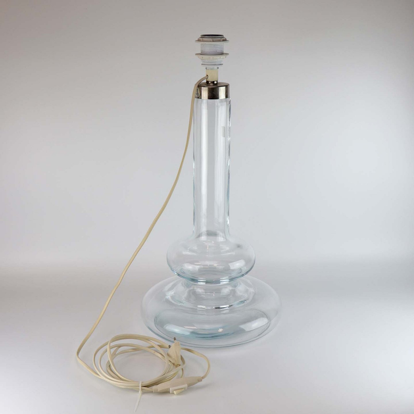 Høj lampefod i klart glas med lys ledning med tænd og sluk knap