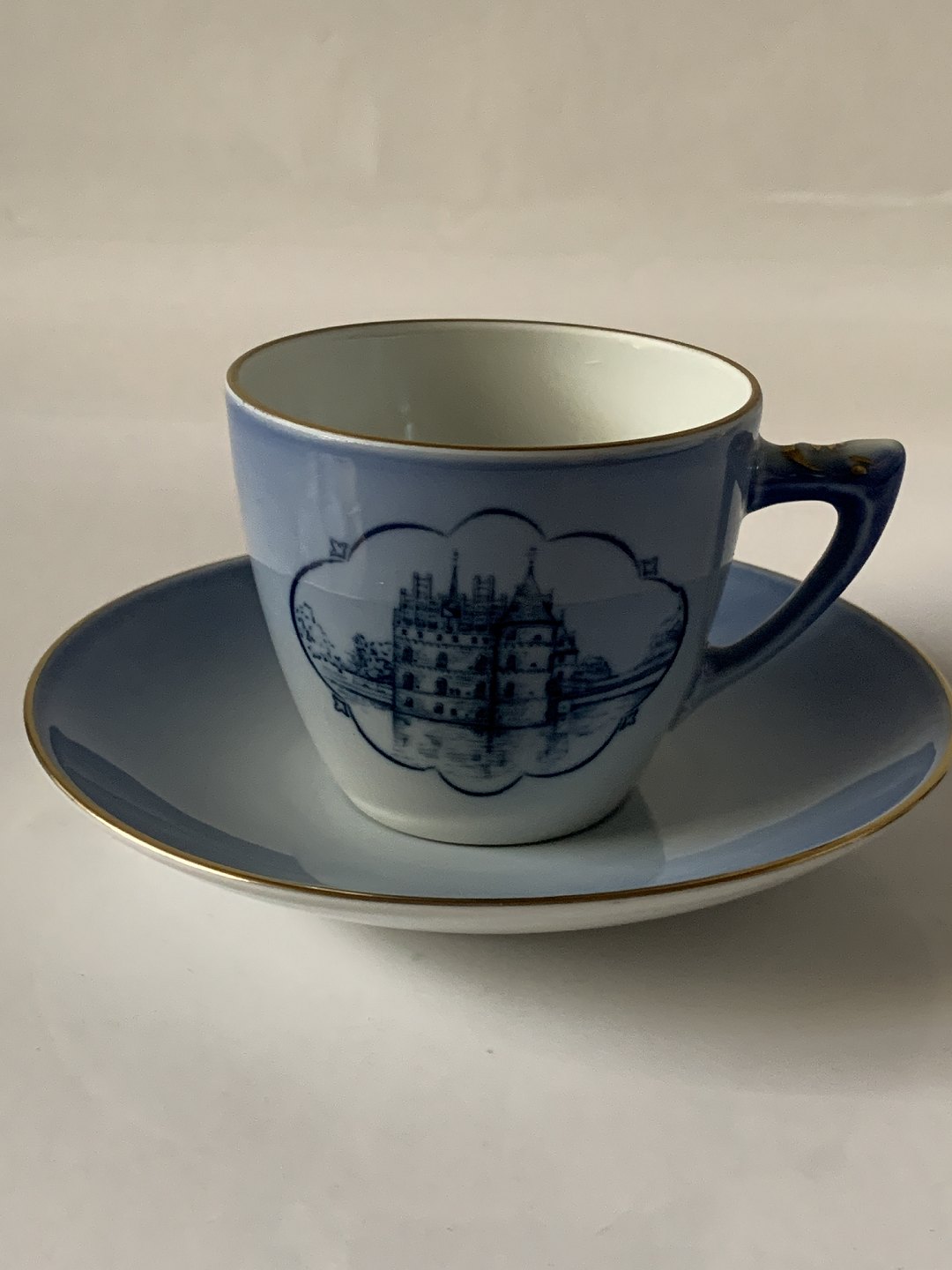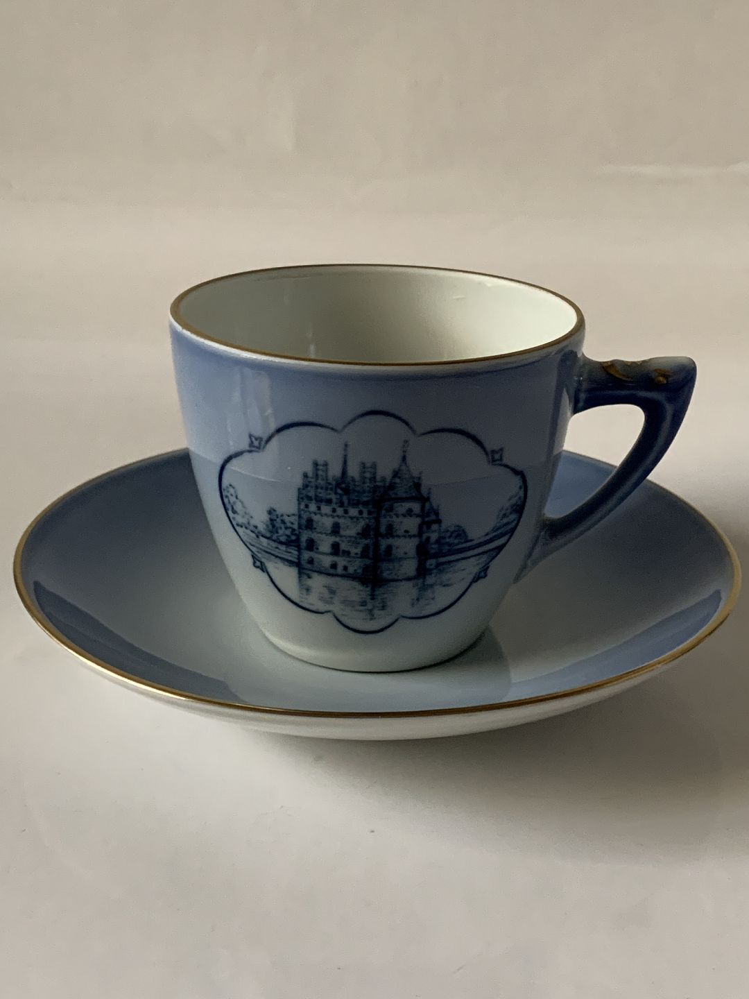 Bing & Grøndahl Slotsstellet, kaffekop og underkop med slottet Egeskov.