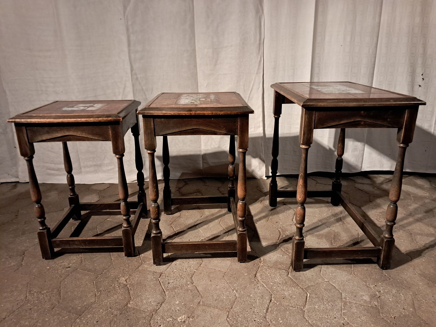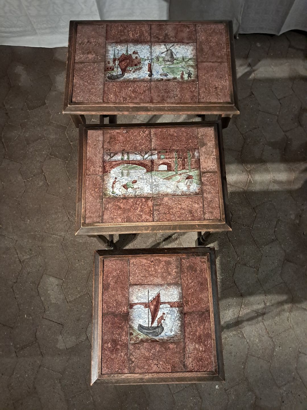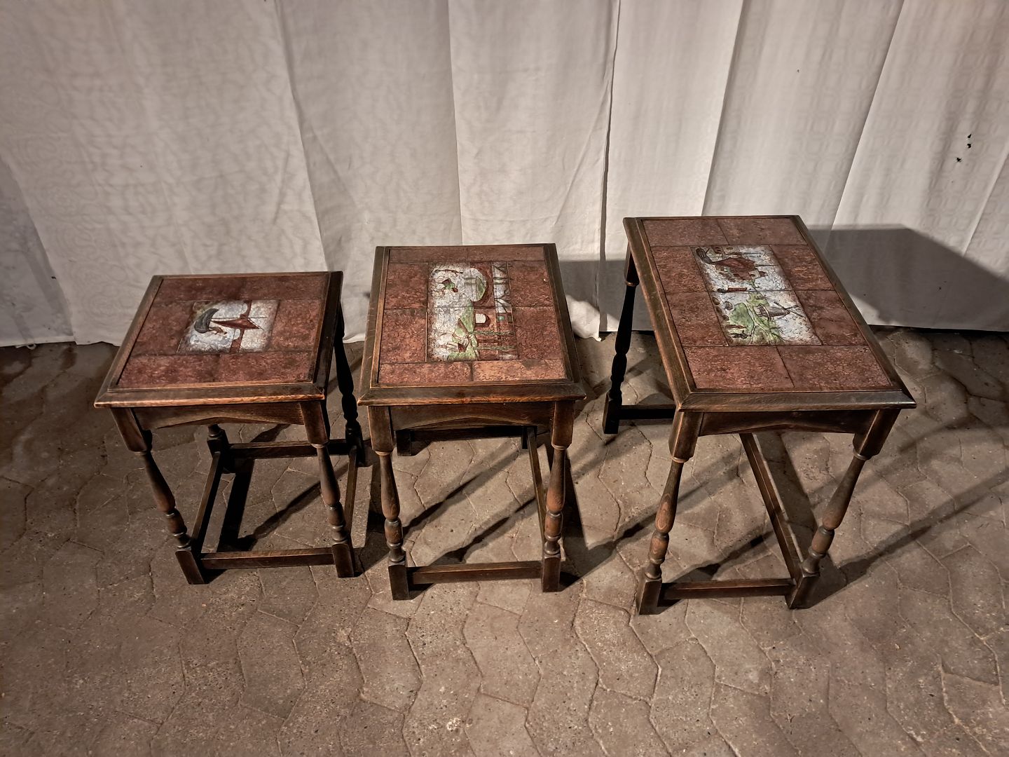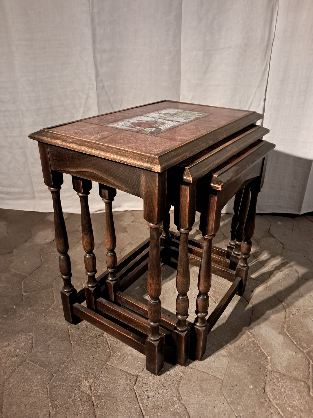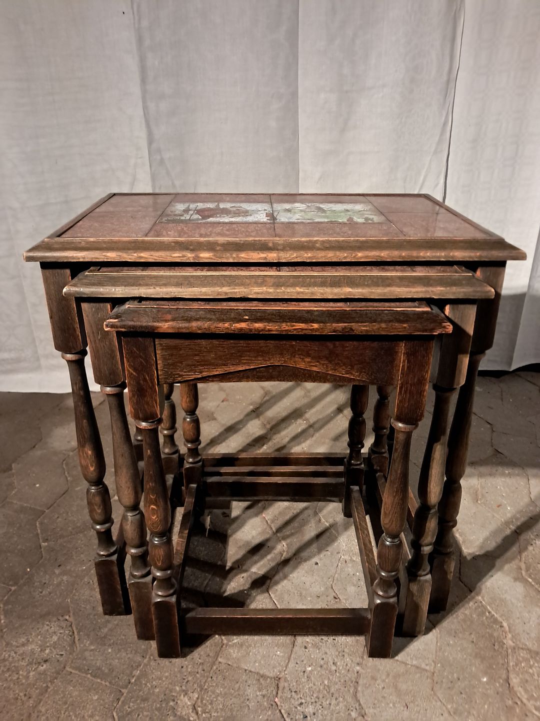 3 Indskudsborde i egetræ med kakler, fra 1930erne.