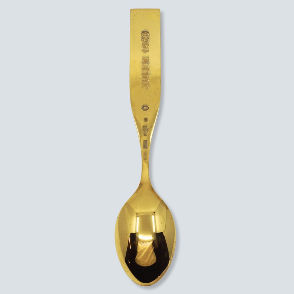 Juleske af forgyldt sterling sølv med emalje. Design Rolf Middelboe, f. 1917, d. 1995.