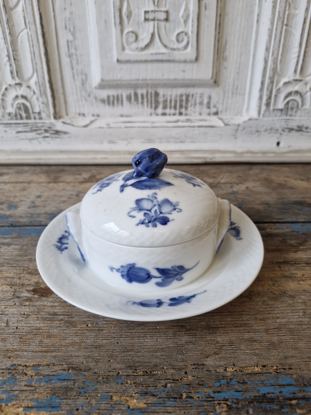 Royal Copenhagen Flettet Blå Blomst smørskål på fast underfad no. 8076