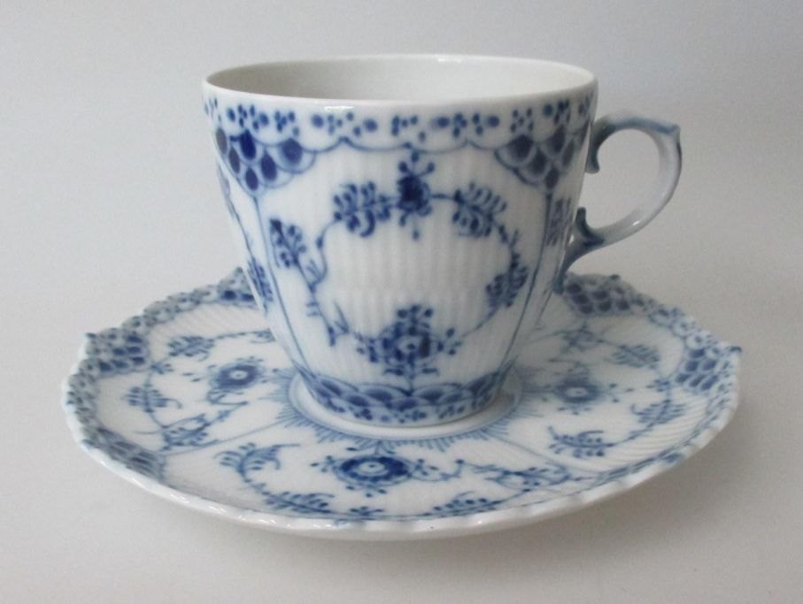 Coffee cup and saucer, fluted full lace, 1035, Royal Copenhagen, Denmark.