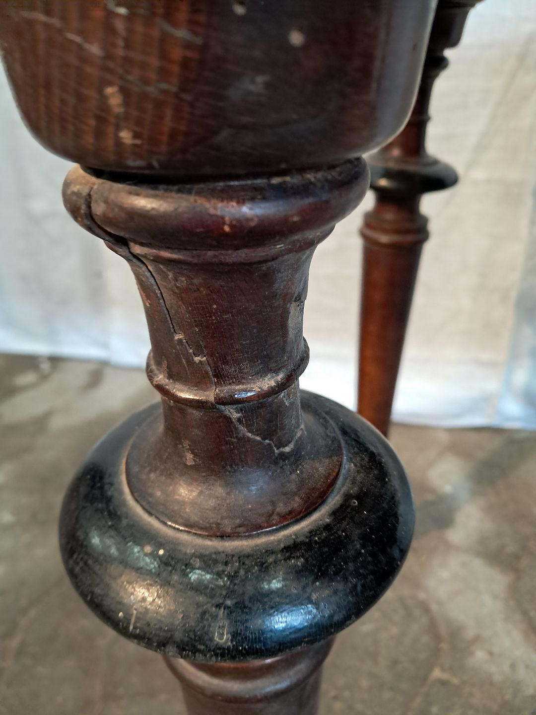 Det har brugsspor og en gammel reparation på venstre bagben.