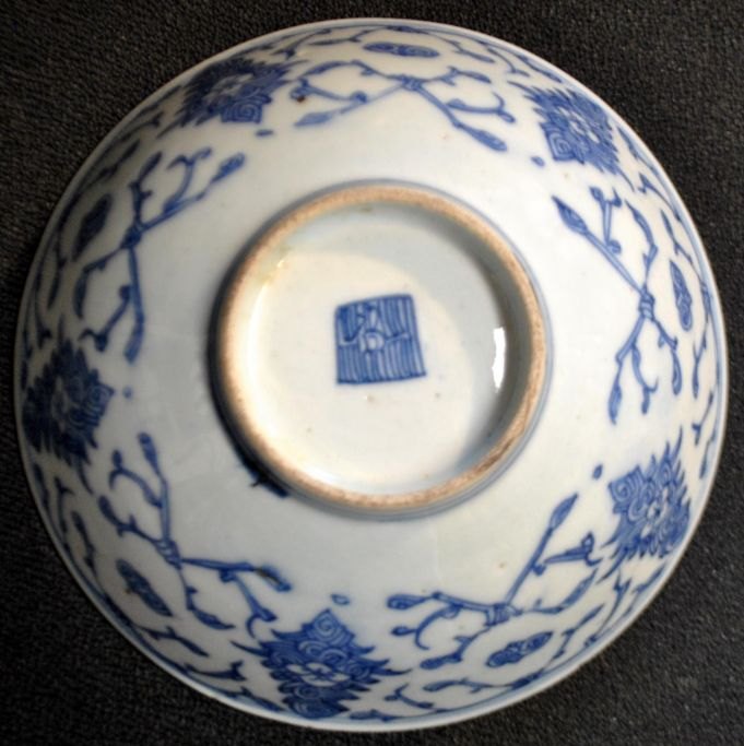 Kinesisk blå/hvid malet porcelæns skål, 19. årh