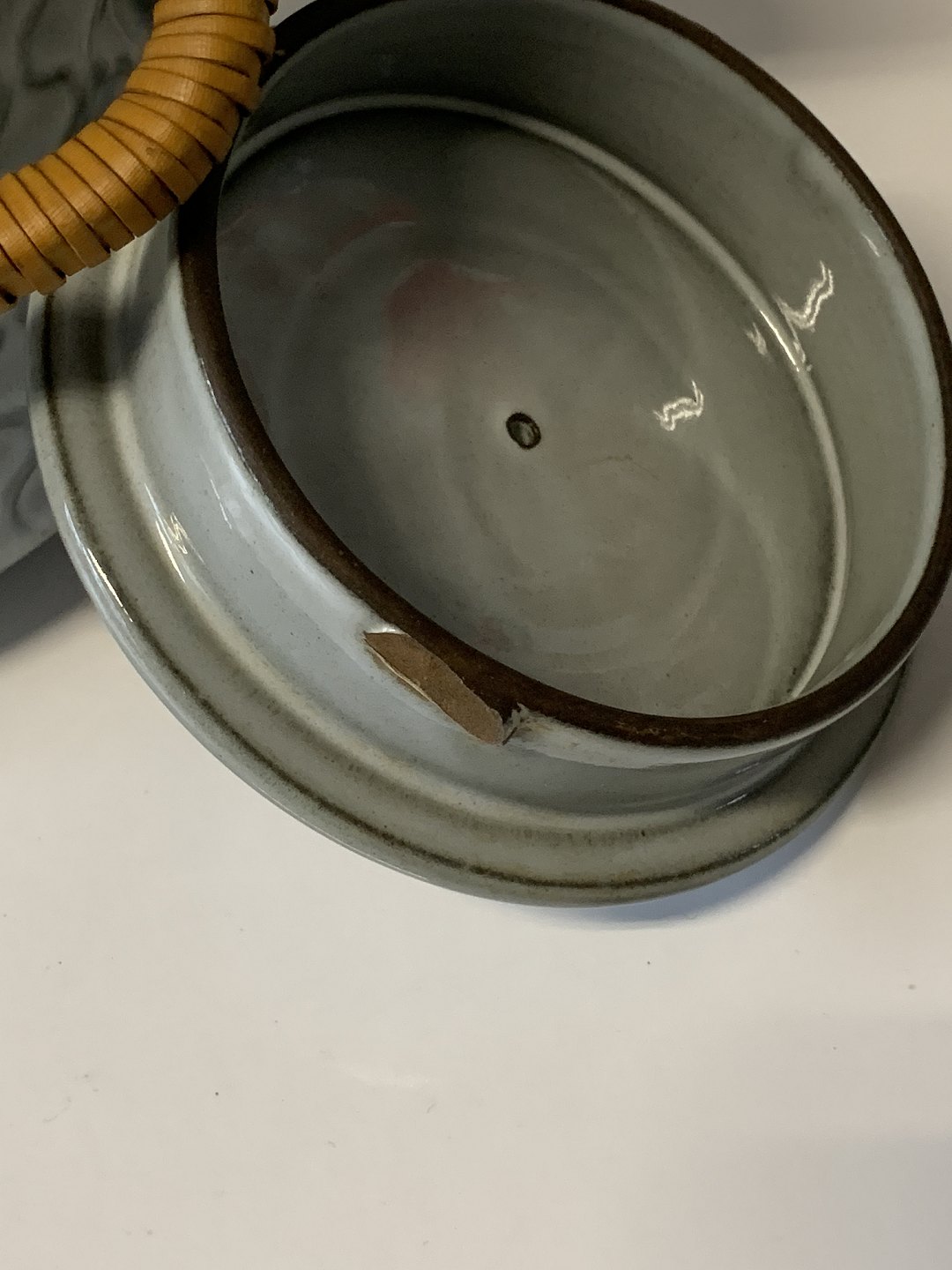 Der er et lille skår på låget indvendig se billede 4