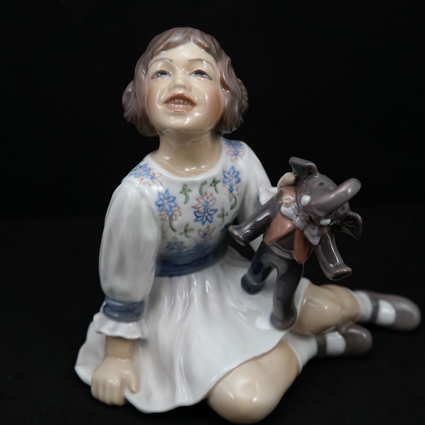 Dahl Jensen figur, Pige med legetøjselefant. /Girl with toy elephant