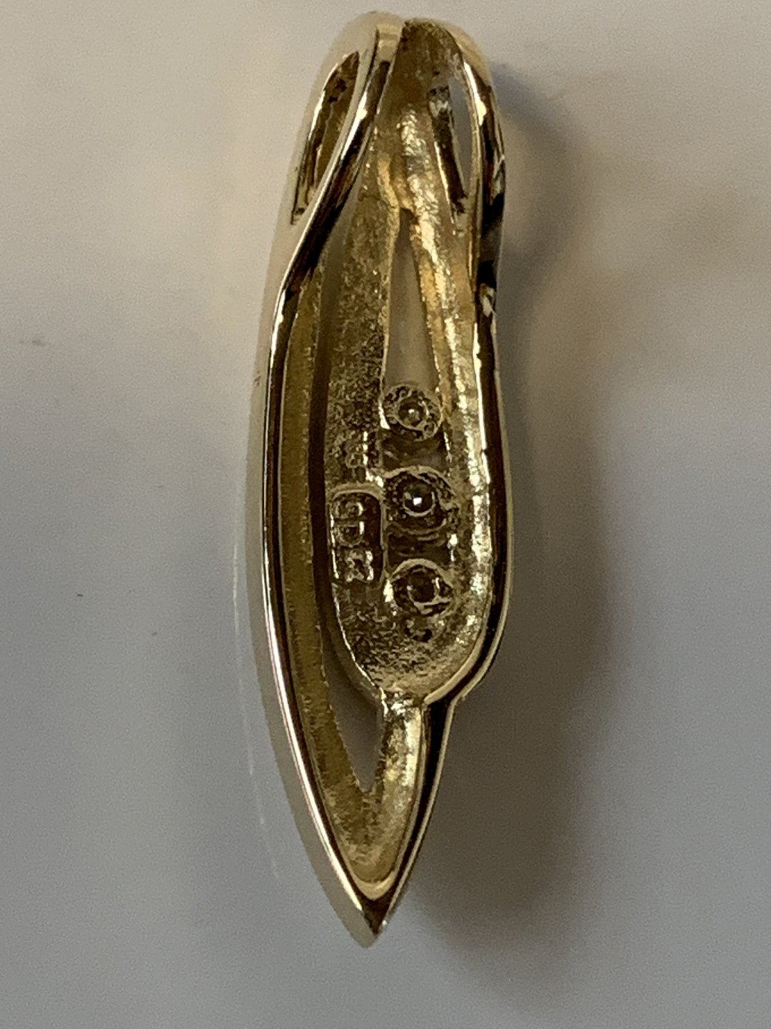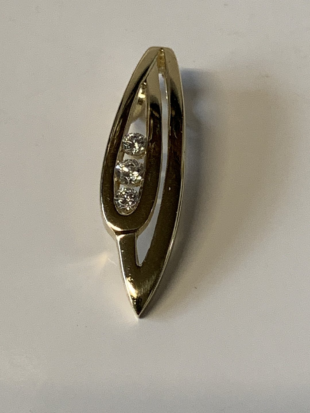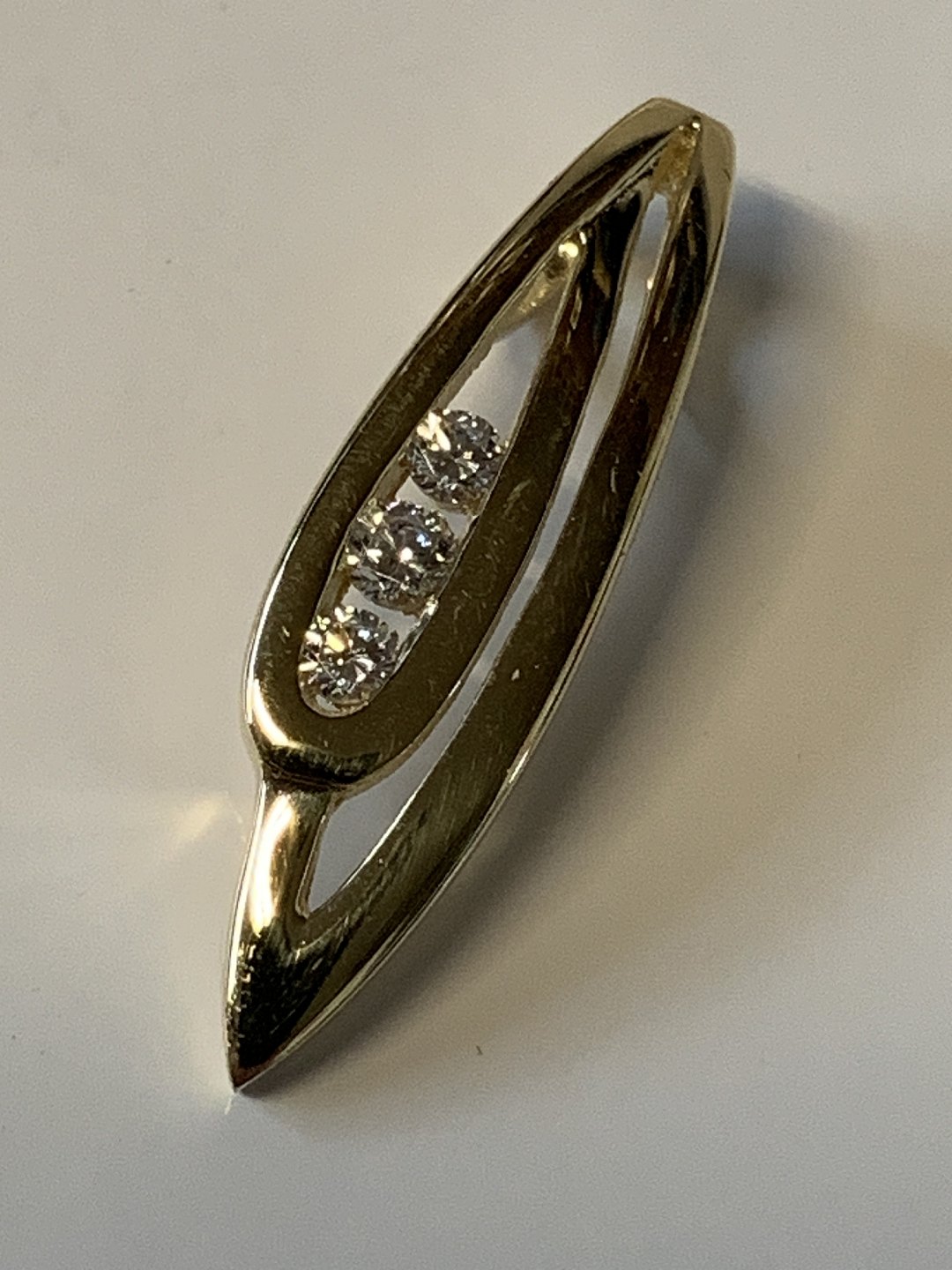 Guldvedhæng i 14 karat guld, med 3 hvide sten, stemplet SD 585. Tidløst design.