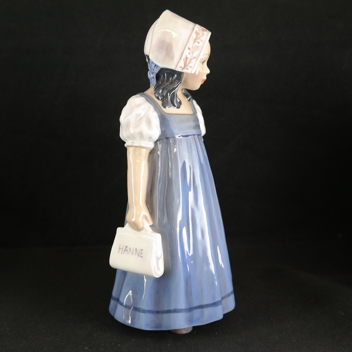 Dahl Jensen figur, Lille Hanne, Blå kjole. / Little Hanne, blue frock.