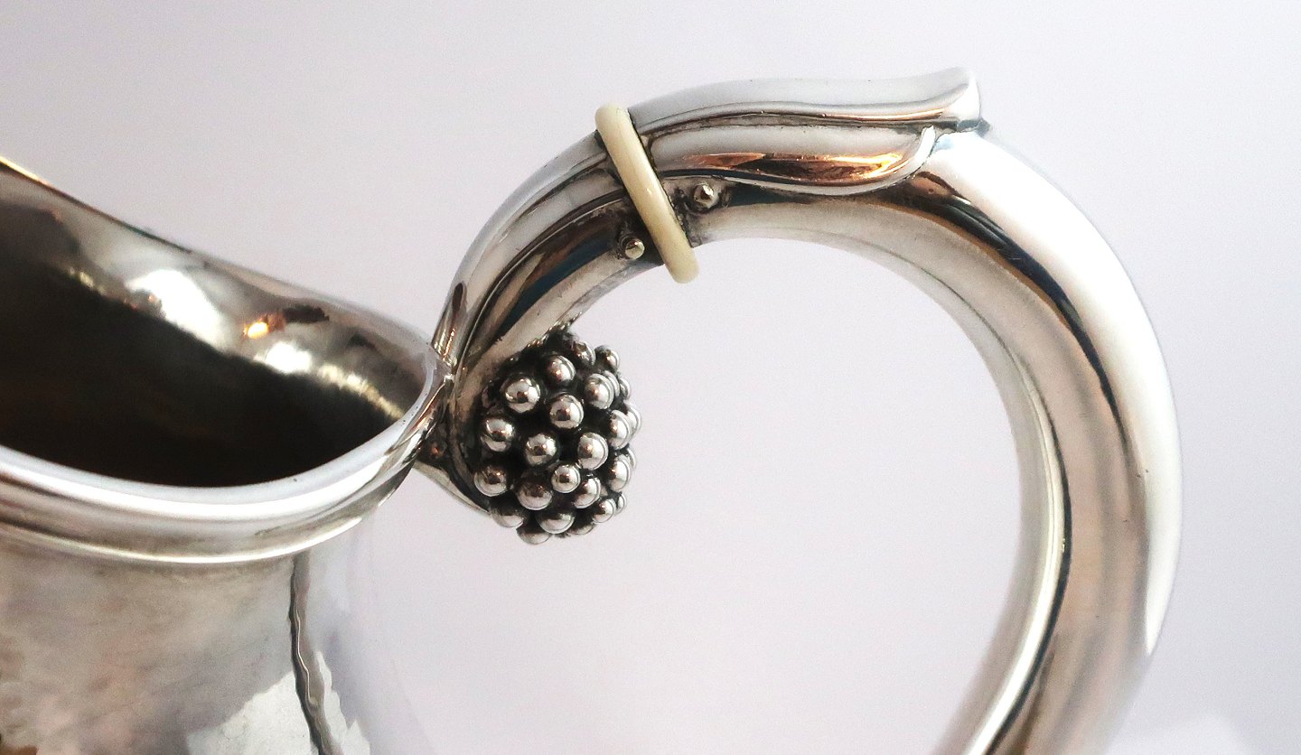 Svend Toxværd. Sterling sølvkande med druer, hammerslået. Højde 18 cm.