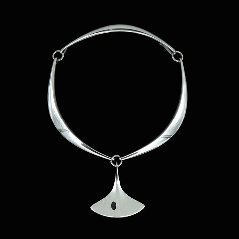 Hans Hansen. Halsring #320 i sterling sølv med emaljevedhæng #323 - Bent Gabrielsen.
