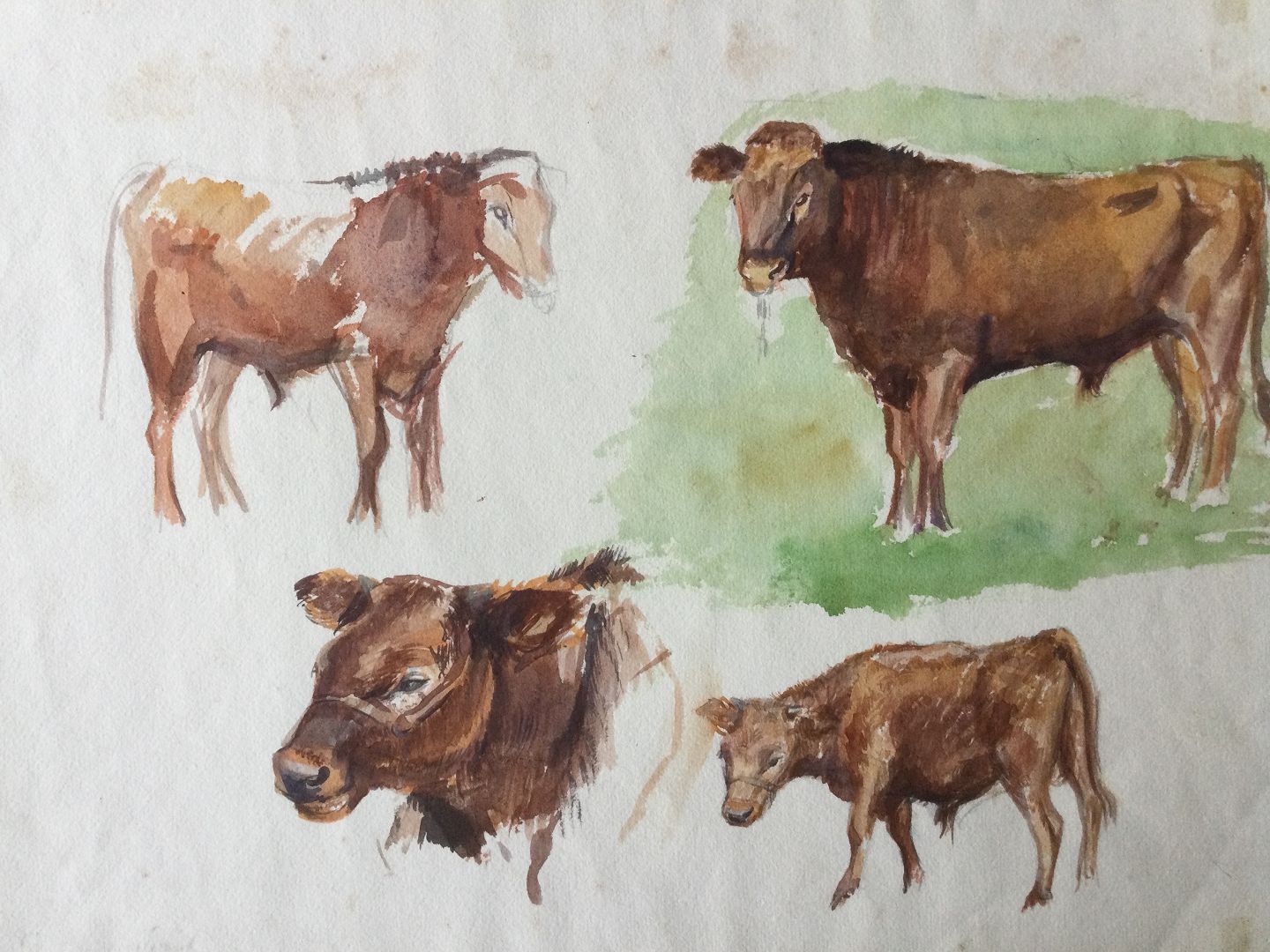 Akvarel af Torkil Norél - Skitser røde køer.