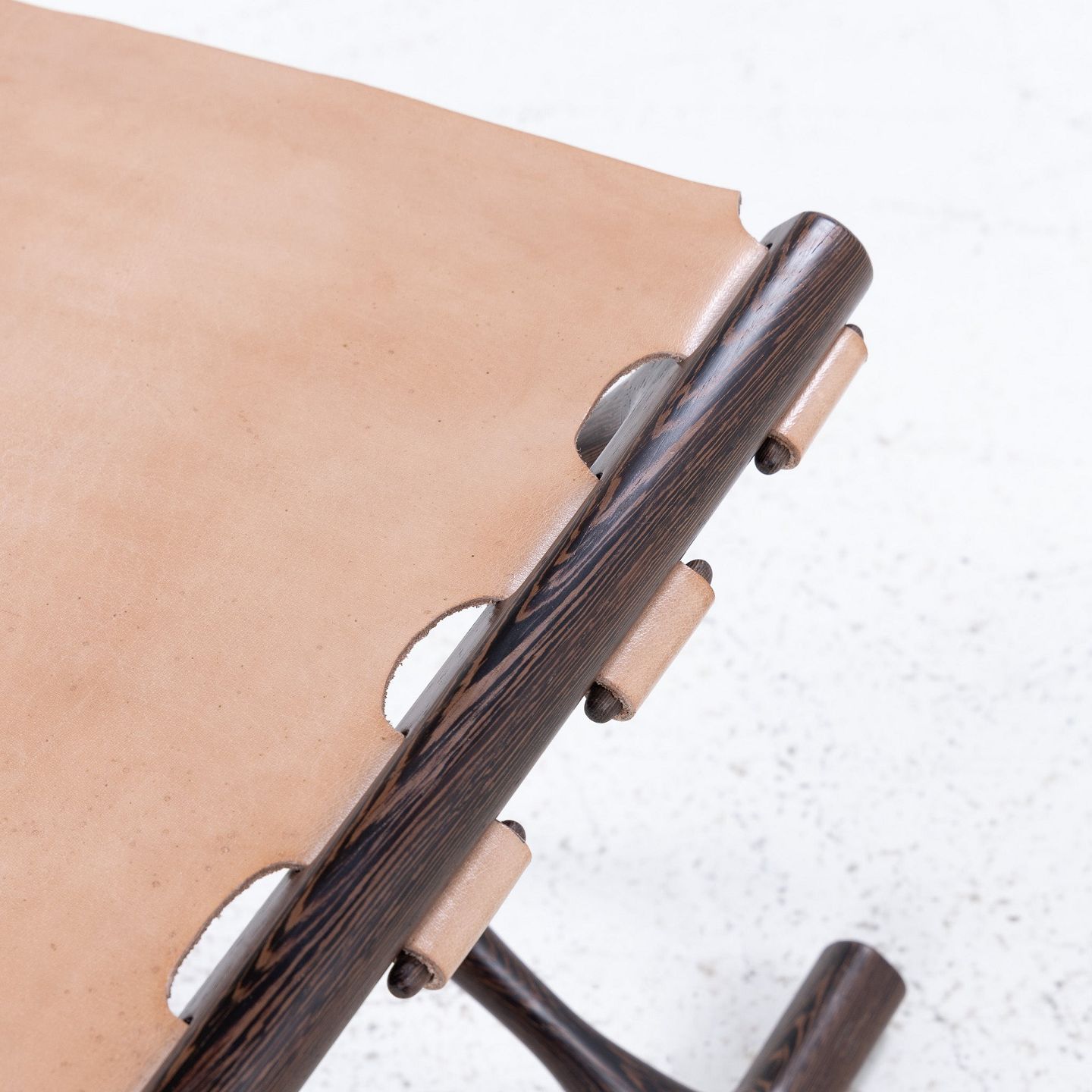 'Guldhøj' - skammel i massiv wengé med natur kernelæder.