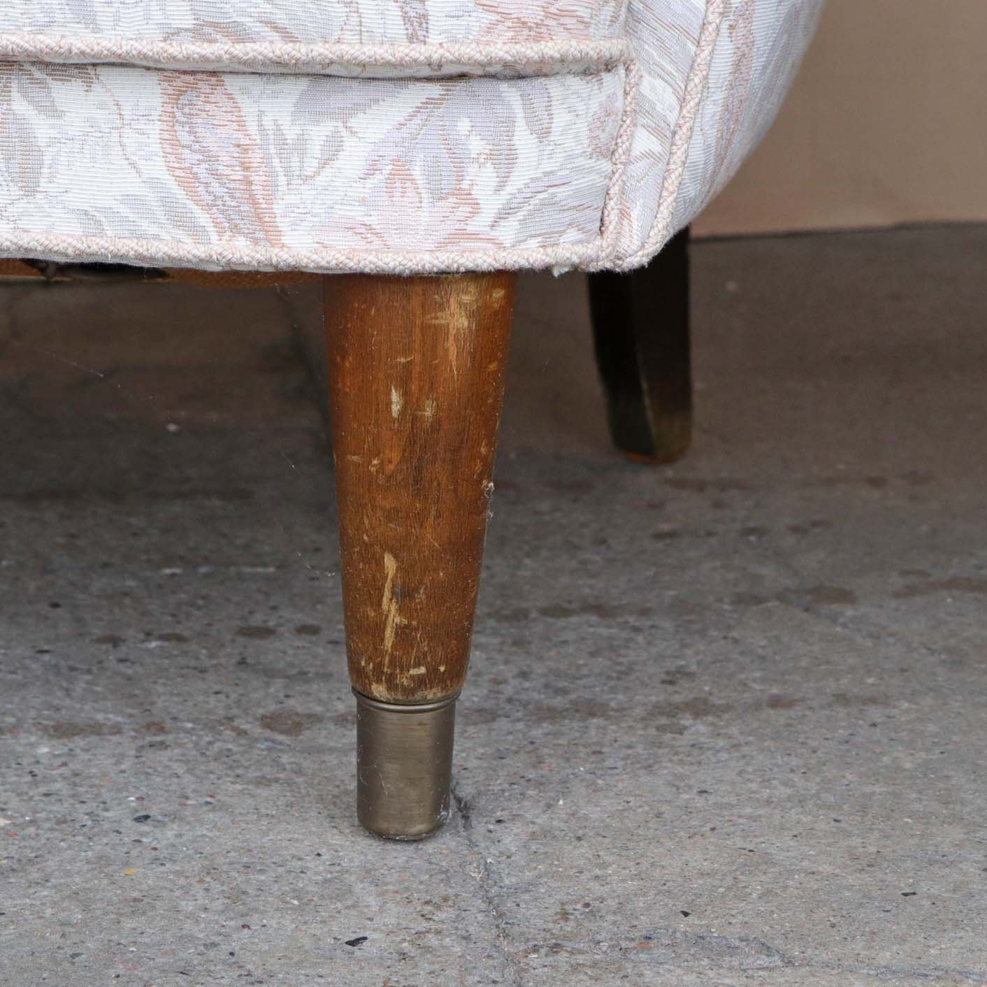 Fremstår med slid på stoffet og brugsspor på træ. Trænger til ompolstring.