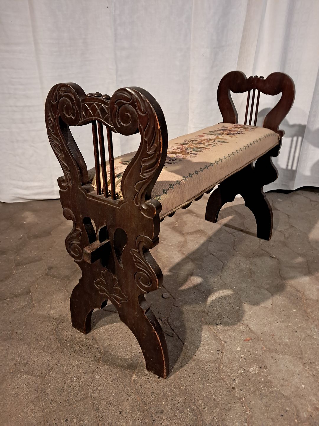 Klaverbænk i massivt fyrretræ, fra 1910erne.