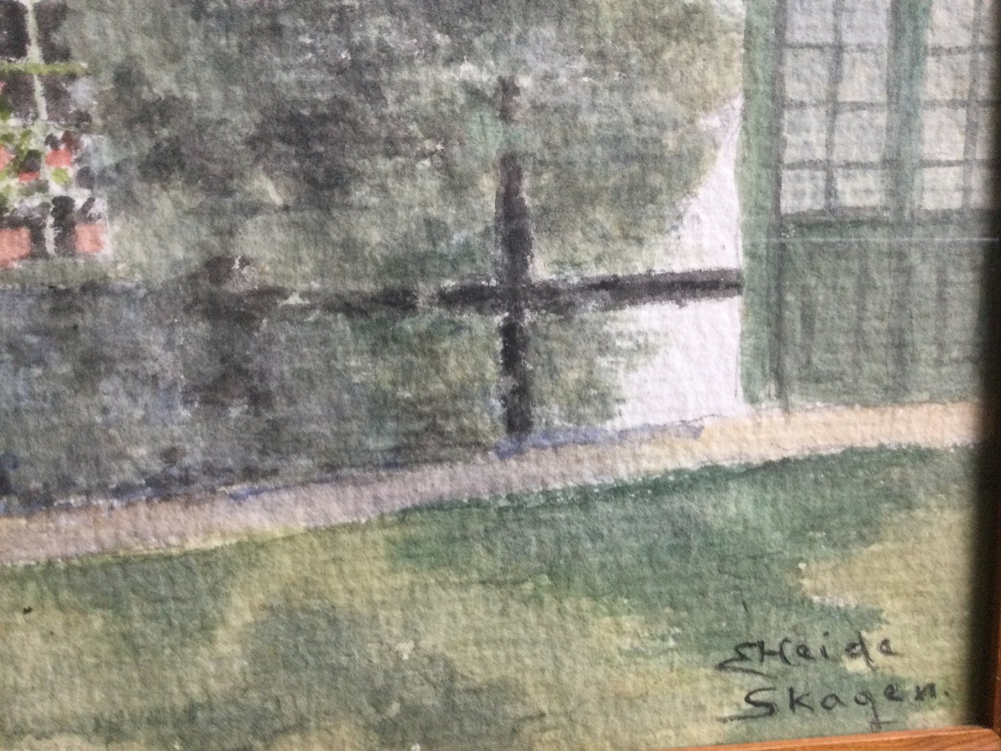 Akvarel af Ella Heide - Parti fra Holger Drachmann's Hus - Villa Pax, Skagen.