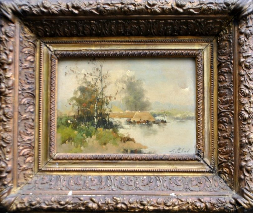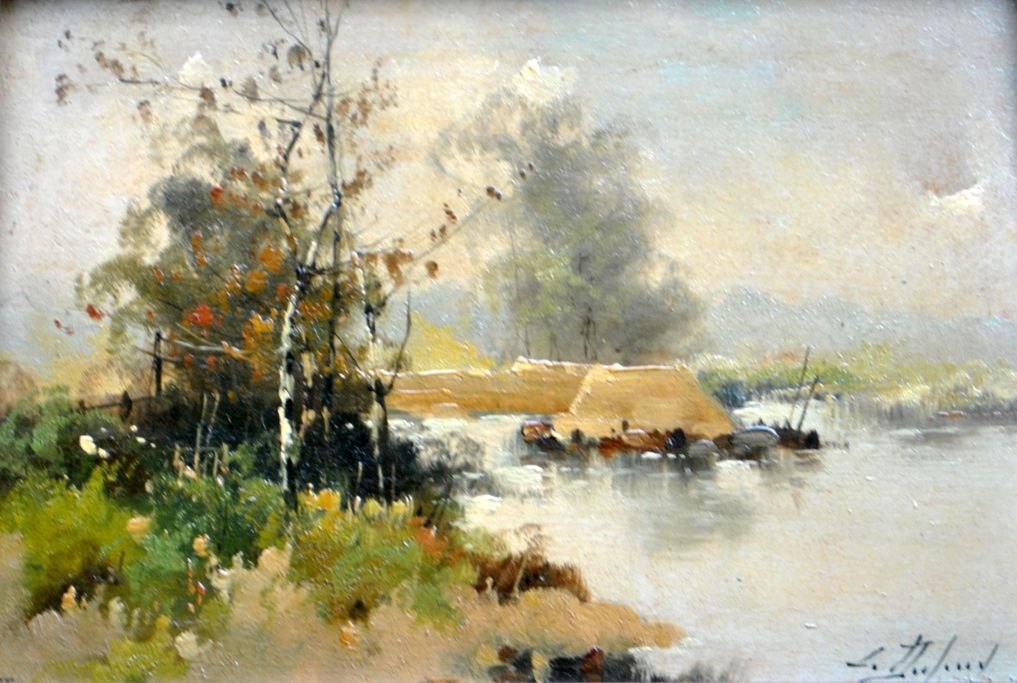 Galien - Laloue, Eugene (1854 - 1941) Frankrig: Bådebro. Olie på panel. Signeret: L. Dupuy. H: 16,3 cm. B: 20 cm.
