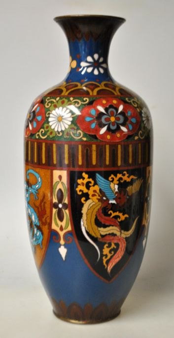 Cloissone vase, Kina, 19. årh. Med talrige dekorationer af drage og fugl Fønix. Polykrom dekoreret. H.: 30 cm.
