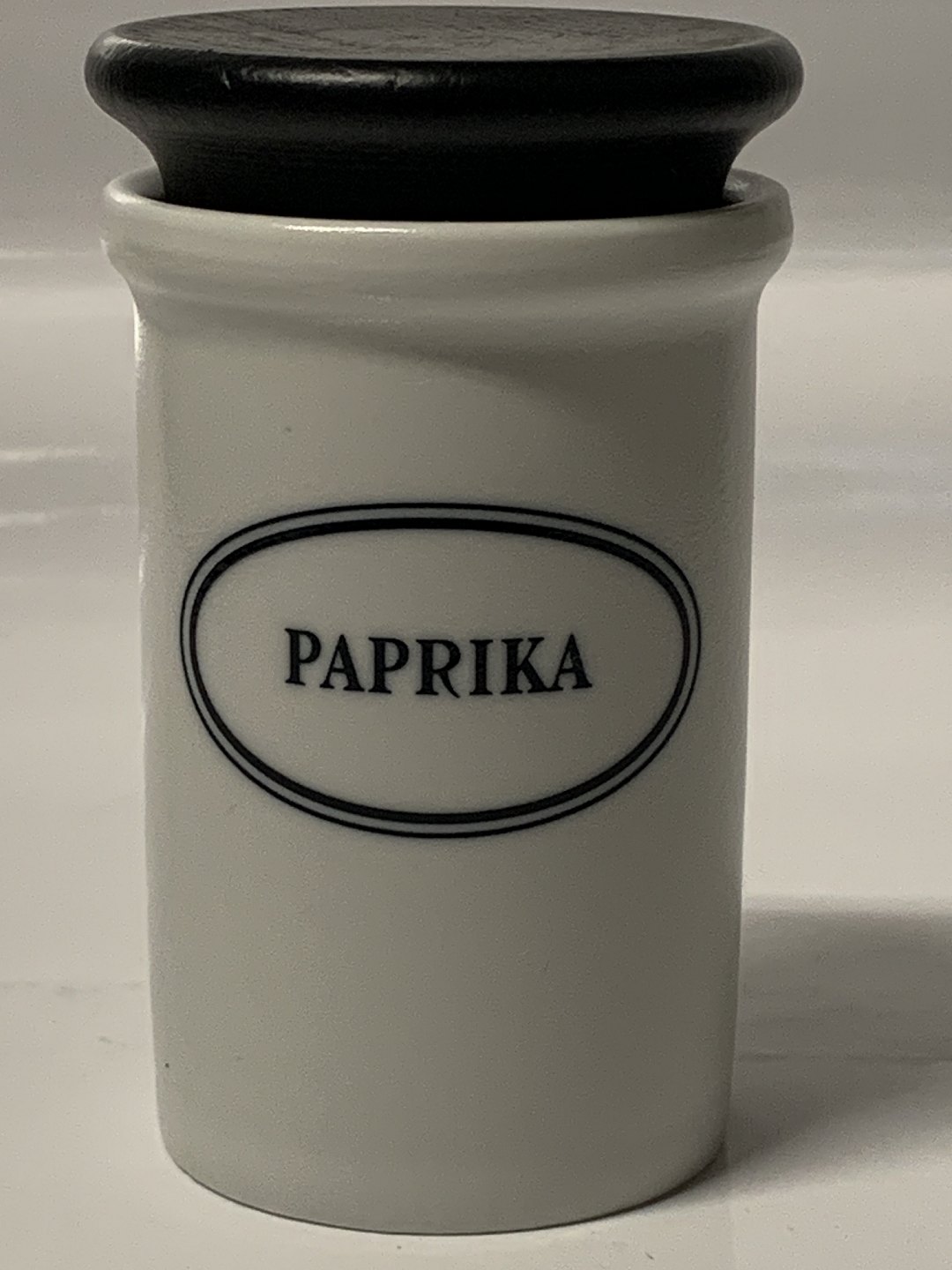 Eslau, Paprika krydderikrukke designet af Bjarne Bo. Matglaseret med sort trælåg, passer til Gourmetserien.