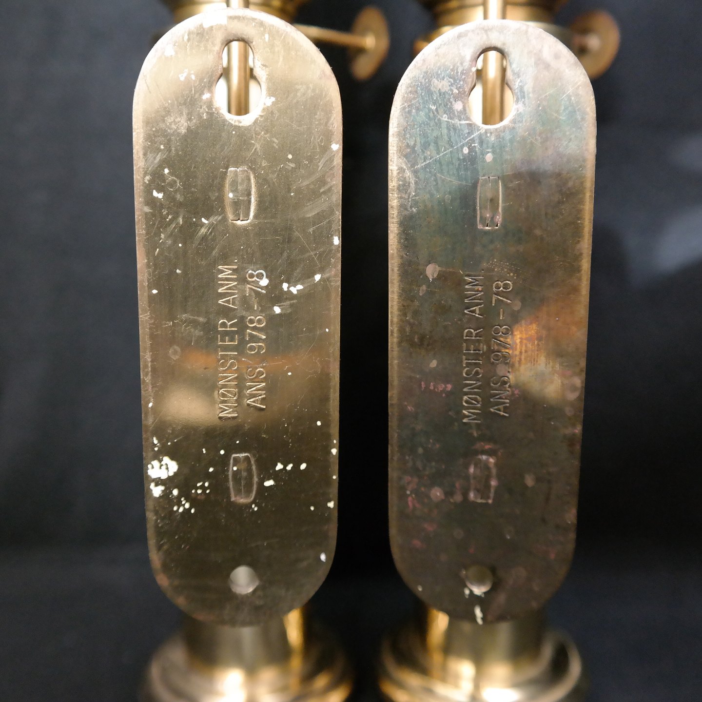 Et sæt nummererede vægstager i messing af G.V. Harnisch EFTF. grundlagt i København 1842.